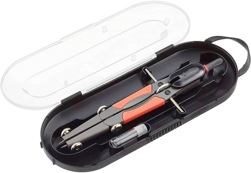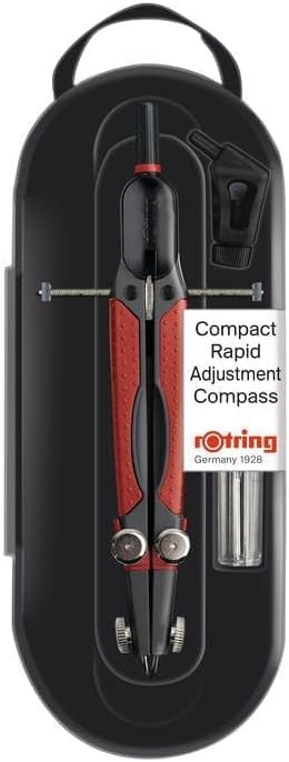 Set completo da disegno – Include bussola rOtring Compact (raggio 360 mm) più una matita meccanica precisa da 1,00 mm per un disegno tecnico fluido. Raggio a regolazione rapida: regolazione del raggio facile e veloce per cerchi precisi fino a 360 mm di diametro. Corpo ergonomico nero – Design leggero e resistente con impugnatura comoda per un uso prolungato. Ingegneria tedesca di precisione: materiali di alta qualità e lavorazione artigianale garantiscono una precisione costante per architetti, ingegneri e studenti. Perfetto per il disegno tecnico: ideale per progetti di disegno, geometria, design e ingegneria che richiedono strumenti di precisione.