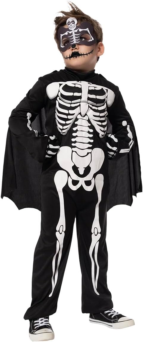 Rubies Costume Super Scheletro per bambino e bambina, Tuta con muscoli, mantello, guanti e maschera, Licenza Ufficiale, Scheletros, Skeletons per Halloween, Carnevale, Cosplay e Feste
