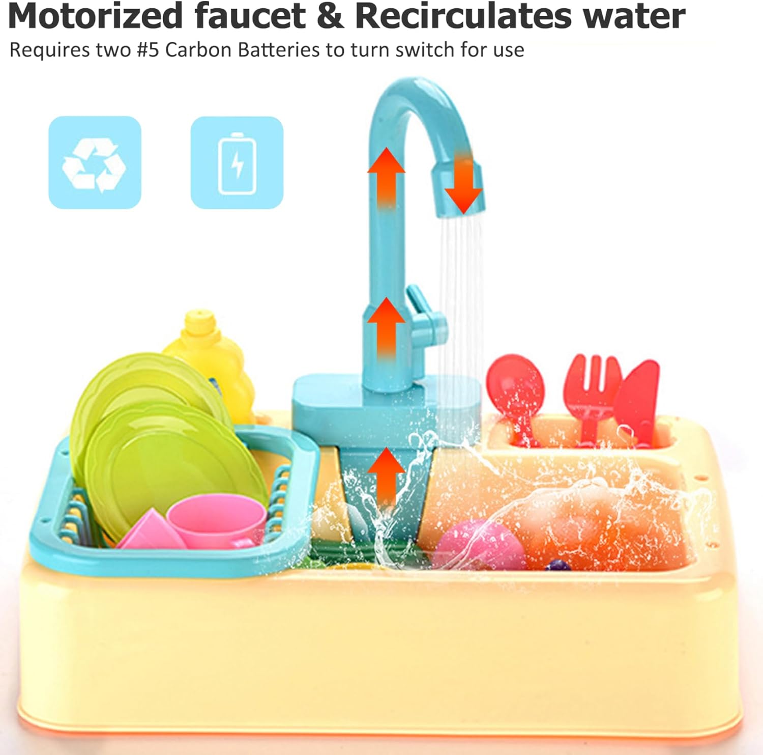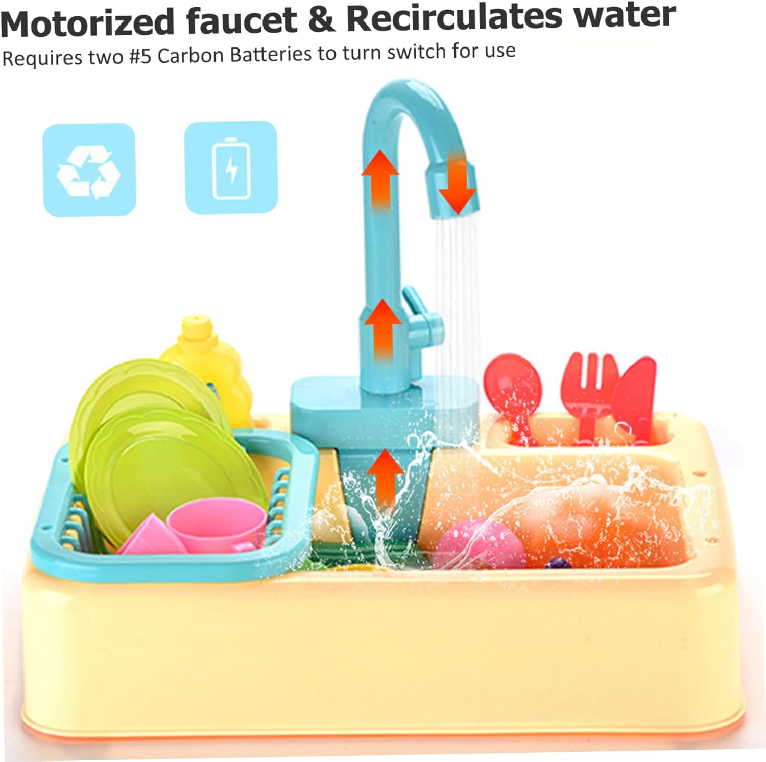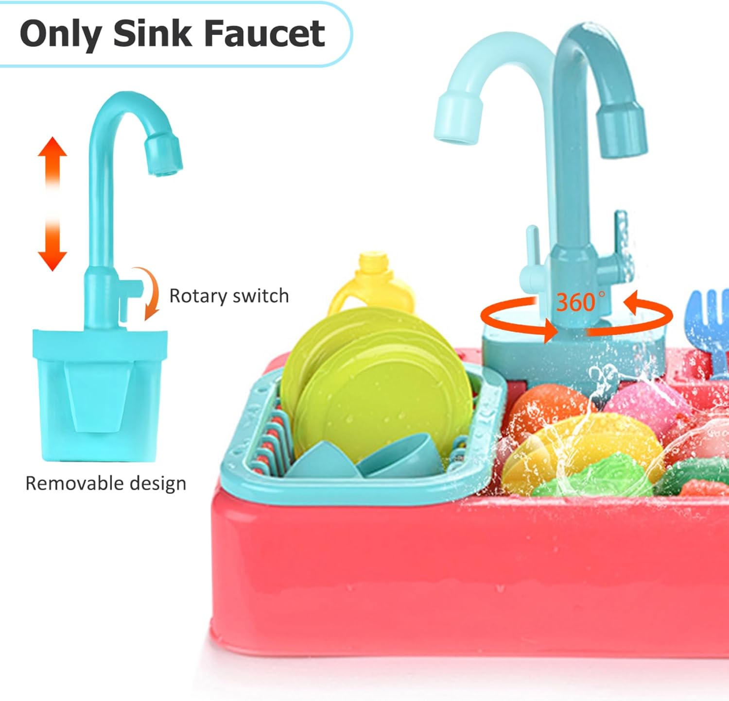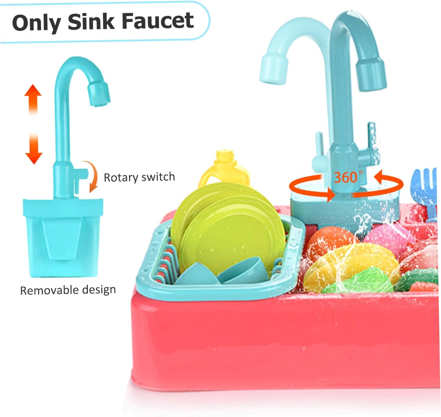 Materiale sicuro: il lavandino da gioco con acqua corrente è realizzato in materiale plastico, sicuro e resistente all'usura e può resistere al gioco a lungo termine..Non ha spigoli vivi e piccole parti, il che lo rende adatto ai bambini con cui giocare. Ideale: sorprendi i tuoi piccoli chef con il nostro rubinetto elettrico per lavello giocattolo e lascia volare la loro creatività e immaginazione..Che tratti di un compleanno, di una vacanza o di un'occasione speciale, questo giocattolo interattivo sarà sicuramente un successo sia per i bambini che per i genitori. Compatibilità universale: con un design smontabile, i giocattoli del lavello da cucina sono compatibili con la maggior parte dei lavelli da cucina e delle casette da gioco, rendendoli un accessorio versatile per il gioco di finzione dei bambini. Design realistico: il nostro rubinetto per lavandino giocattolo è progettato per ruotare di 180° a destra e a sinistra, facendolo sembrare reale..Dall'elegante maniglia al beccuccio, ogni aspetto del rubinetto è progettato per prendere vita. Circolazione dell'acqua: il lavandino per bambini con acqua corrente utilizza un meccanismo elettrico, alimentato da batterie 2xaa (non incluse), che può far circolare l'acqua, offrendo un'esperienza di gioco realistica.