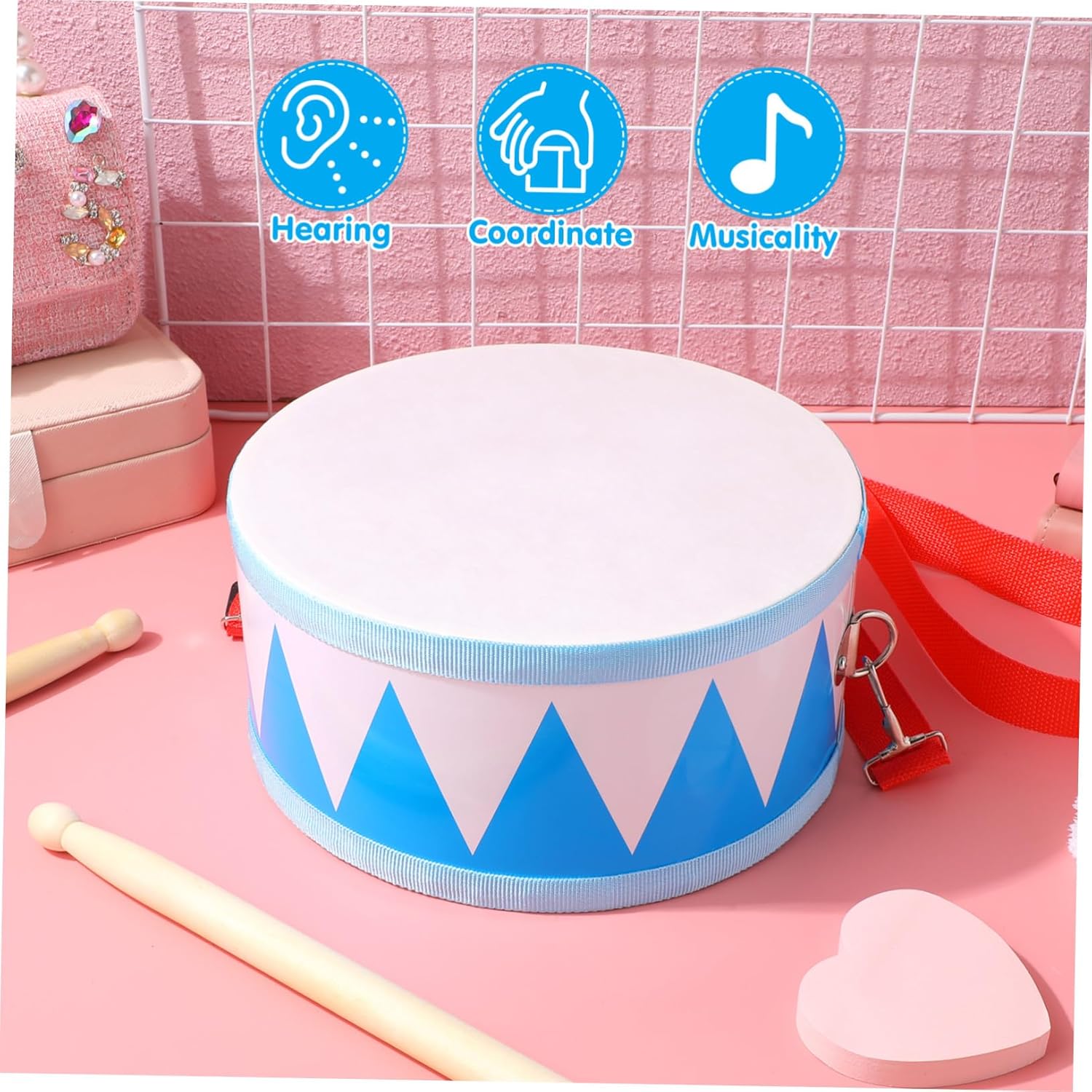 Tamburo giocattolo musicale - superficie liscia senza sbavature, elevato fattore di sicurezza, piccolo e carino, molto pratico, strumento a percussione per - facile e divertente. Questi strumenti a percussione possono promuovere l'hobby musicale e le abilità pratiche dei bambini, Tamburo Giocattolo a percussione - Questo piccolo strumento a percussione allena la capacità di coordinazione della mano e del cervello, un giocattolo musicale Rullante - può non solo migliorare le abilità fisiche ma anche le capacità cognitive, batteria Giocattolo musicale - ha la capacità di deformarsi e rompersi, è molto durevole e interessante, Strumenti a percussione