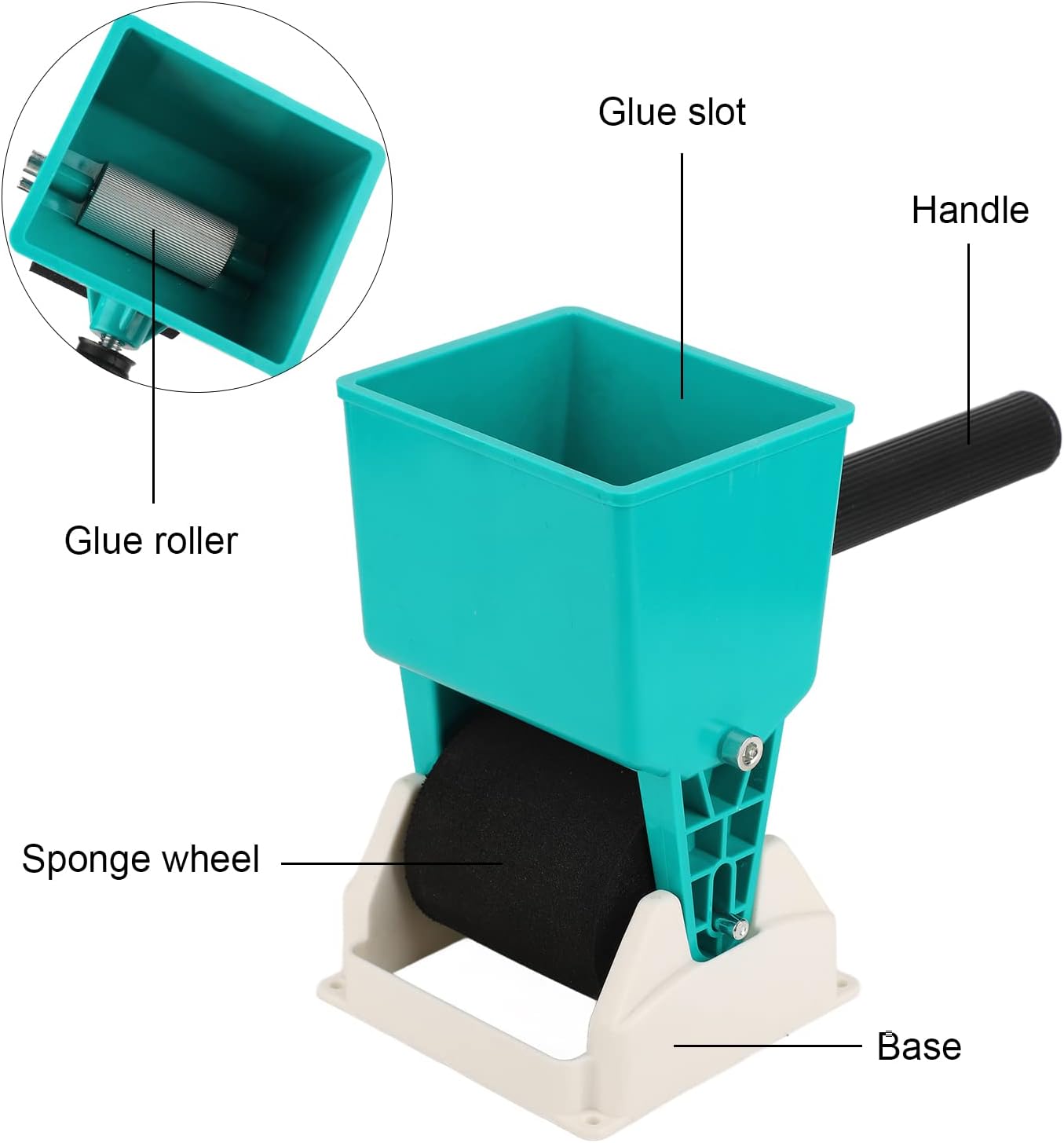 Struttura semplice: questo rullo per colla portatile presenta una struttura semplice, che garantisce leggerezza e grande praticità. Controllo del flusso: questo applicatore di colla portatile supporta il controllo del flusso di colla regolando la maniglia, in modo da poter controllare lo spessore della colla aumentando o riducendo i tempi di laminazione. Funzionamento semplice: questo rullo per colla per legno adotta il funzionamento manuale e il funzionamento con una sola mano. L'impugnatura in plastica antiscivolo offre una presa comoda e sicura, consentendoti di avere il pieno controllo del processo di incollaggio. Rullo di colla: l'applicatore di colla trasferisce la colla dall'imbuto alle ruote per gravità senza ripetute immersioni. La quantità di colla dovrebbe essere inferiore a quella del contenitore per evitare fuoriuscite. La colla applicata deve asciugare per 8‑10 ore; Facile da pulire: questo rullo applicatore di colla può essere lavato con acqua pulita. La maniglia antiscivolo è comoda da tenere in mano e può essere rimossa quando non viene utilizzata per risparmiare spazio di archiviazione.