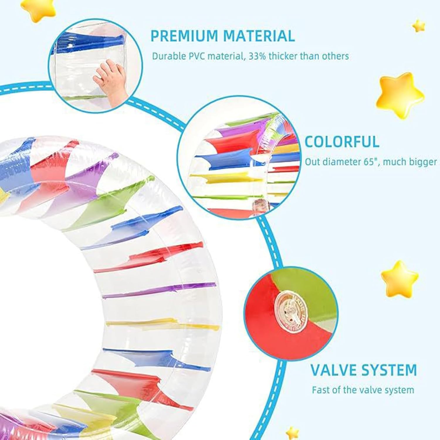 【Per una fascia d'età più ampia】: il giocattolo gonfiabile a rotelle è adatto a una fascia d'età più ampia: bambini dai 3 anni in su. Questo perché il giocattolo gonfiabile a rotelle è stato recentemente aggiornato! 【Materiale sicuro】: la ruota gonfiabile è realizzata con materiali in PVC sicuri e rispettosi dell'ambiente, e il rullo è innocuo e inodore for garantire la qualità. 【Prodotto resistente】: poiché il rullo galleggiante gonfiabile adotta un design a tre strati ispessito, questo rullo è resistente all'usura e durevole, quindi può essere ampiamente utilizzato. 【Splendido prodotto】: il rullo galleggiante gonfiabile è un fantastico giocattolo da piscina for bambini e adulti. I nostri rulli galleggianti gonfiabili combinano divertimento e visione. 【Giocattolo multifunzionale】: la ruota idraulica for piscina non può essere utilizzata solo su prato, cortile, parco, spiaggia, ma anche in acqua; si prega di giocare con la ruota sotto la supervisione di un esperto.