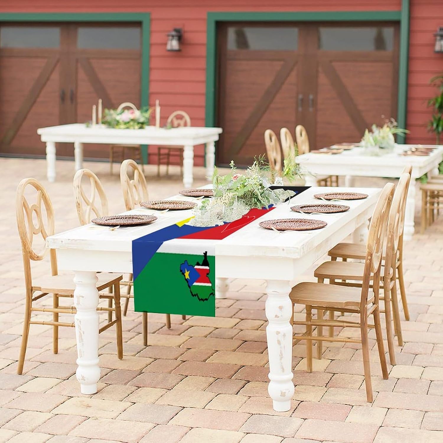 Runner da tavola con bandiera del Sud Sudan e scritta "I Love My Country,South Sudan", runner per tavolino da caffè, decorazione per la cucina, decorazione per la casa, feste, 33 x 228 cm