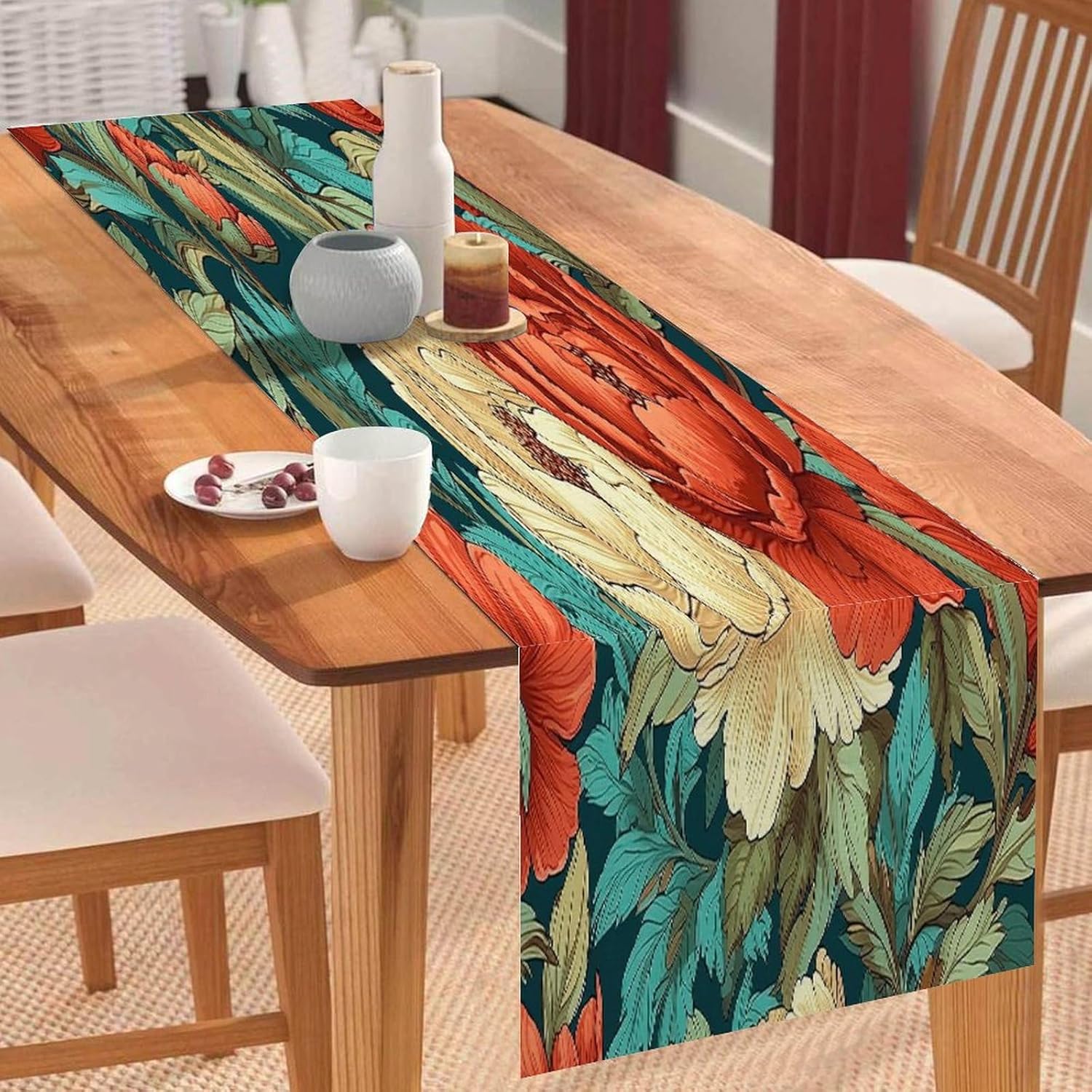 Dimensioni: 274 x 33 cm. Materiale: realizzato in morbido lino di cotone, comodo e durevole, resistente all'usura. Protegge la superficie del tavolo per la decorazione quotidiana della tavola, proteggendo la superficie del tavolo da pentole calde, graffi, danni causati dal calore. [Grande decorazione]: i runner da tavola sono un modo veloce, facile ed economico per aggiornare il tavolo della sala da pranzo, la camera da letto, il comò. Sarà il tuo compagno perfetto per colazione, pranzo e cena. Questa tovaglia dal design elegante aumenterà il fascino del tavolo da pranzo. [Uso multiuso]: alla ricerca di un runner da tavola per più occasioni? Non cercare più! Questo runner da tavola può andare dal ringraziamento alla festa di Natale ed è ottimo anche per una serata estiva informale. Sarà anche un regalo perfetto per i tuoi cari per l'inaugurazione della casa, il Ringraziamento o Natale. Ampia applicazione: caratterizzato da un motivo elegante con un bel bordo con nappe, sembra bello e vintage. Adatto per l'uso quotidiano, balli, matrimoni, feste o qualsiasi vacanza speciale. Ideale per uso interno ed esterno, come cucina, giardino, tè pomeridiano, caffè, cene, balcone, potlucks.