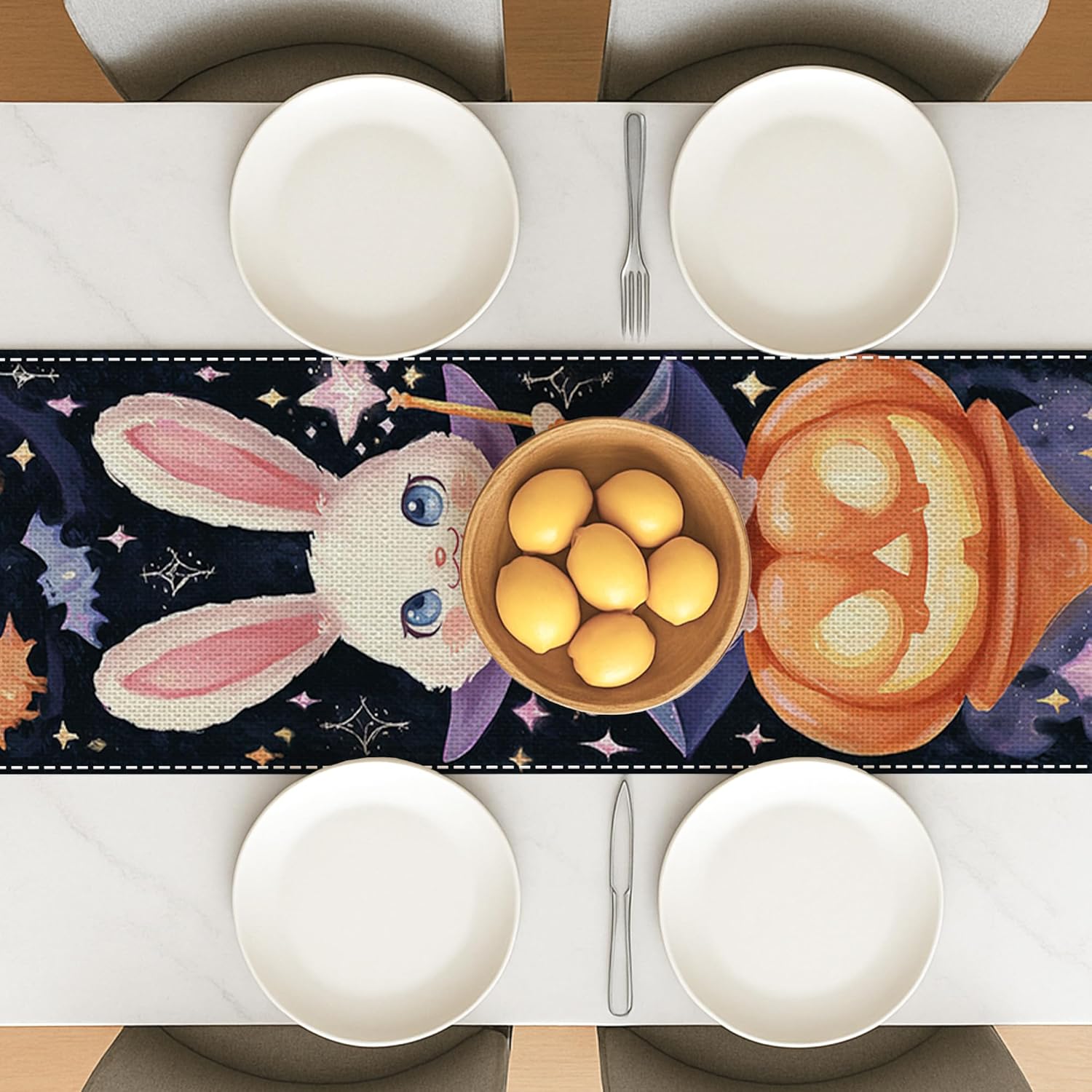 Tessuto in poliestere stile lino: combina la durata del poliestere con il fascino rustico del lino Pratica lunghezza del tavolo: lunghezza sufficiente per una copertura completa senza interferire con posti a sedere o posizioni Tessuto lavabile in lavatrice: facile da pulire in acqua fredda e sicuro per asciugatrice a bassa temperatura Stampa digitale ad alta definizione: offre colori vivaci e dettagli nitidi che rimangono nitidi dopo molteplici lavaggi Caratteristica accattivante: i modelli personalizzati creano un'atmosfera calda e accogliente da festa senza sforzo