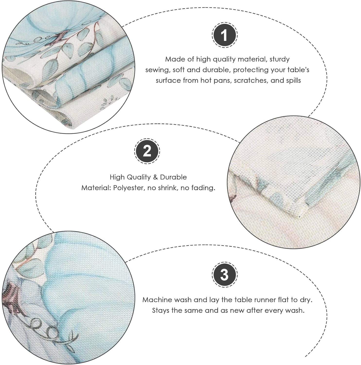 Alta qualità e durevole: realizzato in materiale di alta qualità, cucito , morbido e resistente, protegge la superficie del tuo tavolo da pentole calde, graffi e fuoriuscite Facile da pulire: lavare in lavatrice e stendere il runner in piano per asciugarlo. Rimane uguale e come dopo ogni lavaggio. Materiale: 100% poliestere, non si restringe, non sbiadisce. importato, UTILIZZO AMPIO: Il runner da tavolo è adatto per decorare credenze, tavoli, armadietti per buffet, tavoli TV, tavoli da fattoria, bar, tavoli da buffet, specchiere, rendendo la tua vita ed elegante. Questa decorazione da tavola rustica non è adatta solo per la cena quotidiana, ma anche per riunioni di famiglia, feste al chiuso e all'aperto, ecc. Adatto alle dimensioni del tavolo: questo arredamento autunnale misura 13 x 72 pollici, appropriato per un tavolo che può ospitare 4-6 persone. Offri e uniche per decorare la casa, aggiungere bellezza al tuo tavolino da caffè, tavolo da pranzo, tavolo da soggiorno, tavolo da studio e tavolo da ufficio. DECORAZIONE CUCINA: Il nostro runner da tavola in stile è un must per feste e cene. Il bellissimo runner da tavolo può essere utilizzato per la decorazione di tavoli da pranzo, scarpiere e tavolini da caffè, che possono migliorare l'atmosfera festosa alla festa e stupire i tuoi ospiti.