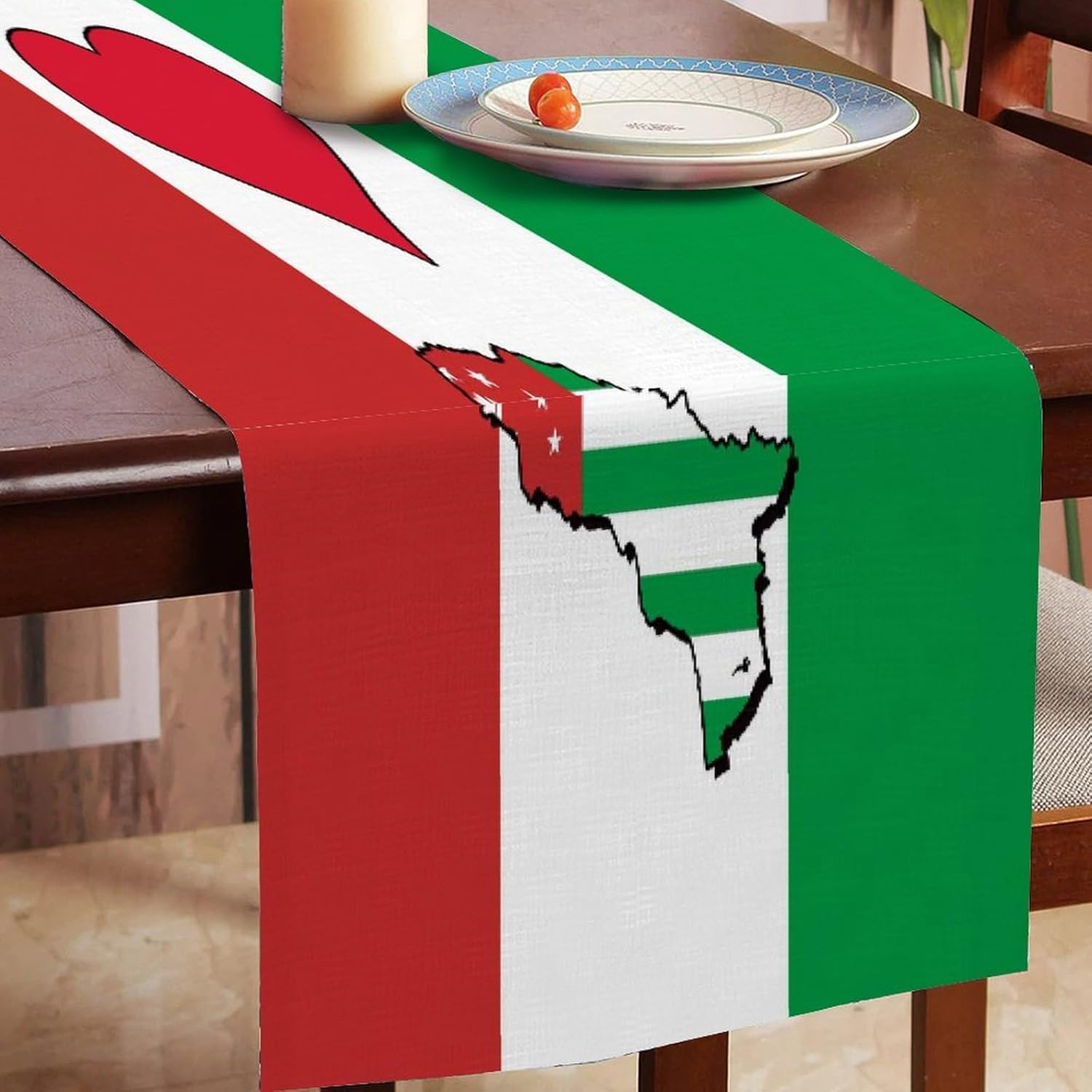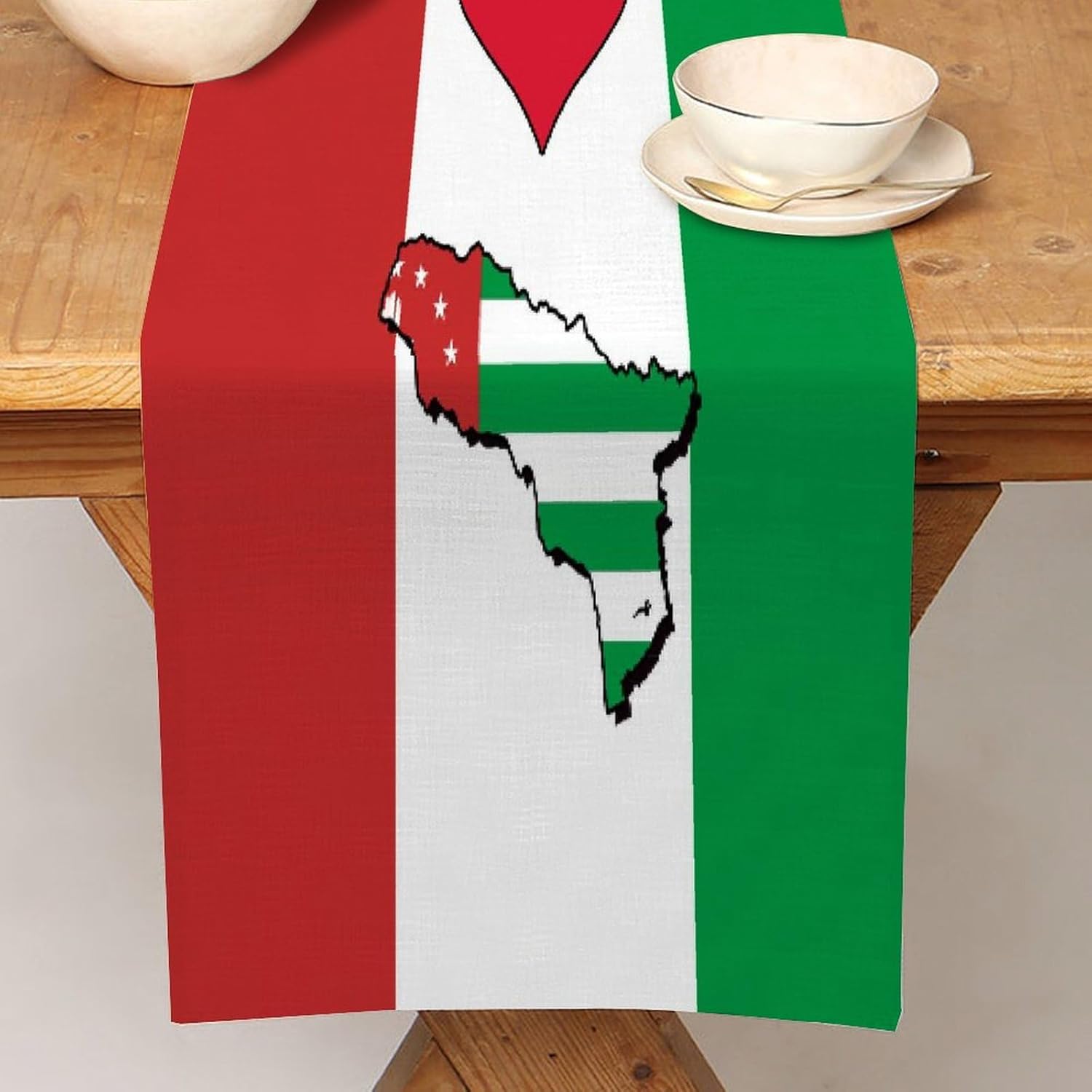 Runner da tavola con scritta "I Love My Country,Abkhazia", 40,6 x 183 cm, motivo: bandiera dell'Abkhazia, in iuta, decorativo, lavabile, per tavolino da caffè, patio, barbecue, tavolo da pranzo