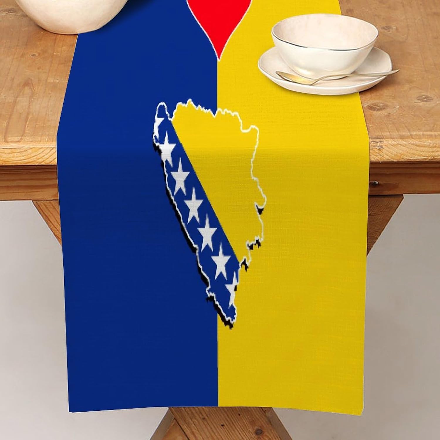 Runner da tavola con scritta "I Love My Country,Bosnia and Herzegovina", 35,6 x 182,9 cm, con bandiera della Bosnia-Erzegovina, in cotone e lino, morbido, per feste, feste, camera da letto, comò