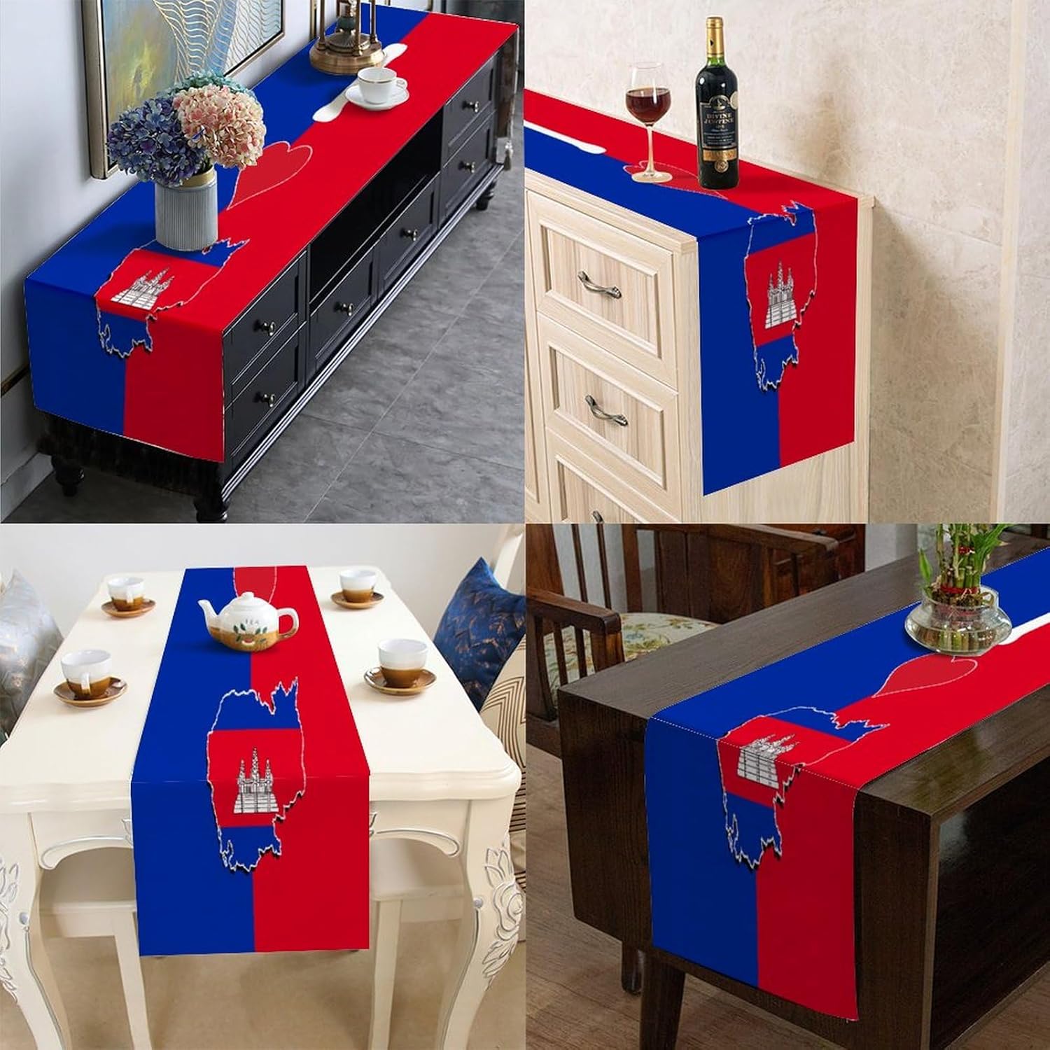Runner da tavola con scritta "I Love My Country,Cambogia, bandiera della Cambogia, runner da tavolino, decorazione per tavolo da pranzo, cucina, decorazione per la casa e le feste, 33 x 178 cm