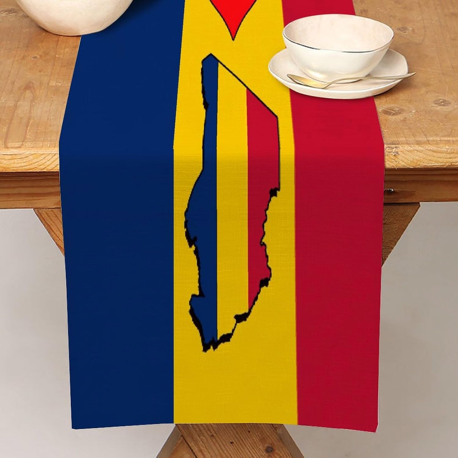 Runner da tavola con scritta "I Love My Country,Chad, 35,6 x 183 cm, bandiera del Ciad, in iuta, decorativo, lavabile, per tavolino, patio, barbecue, tavolo da pranzo, decorazione per la casa