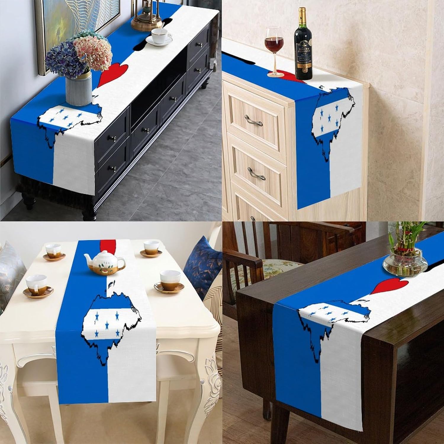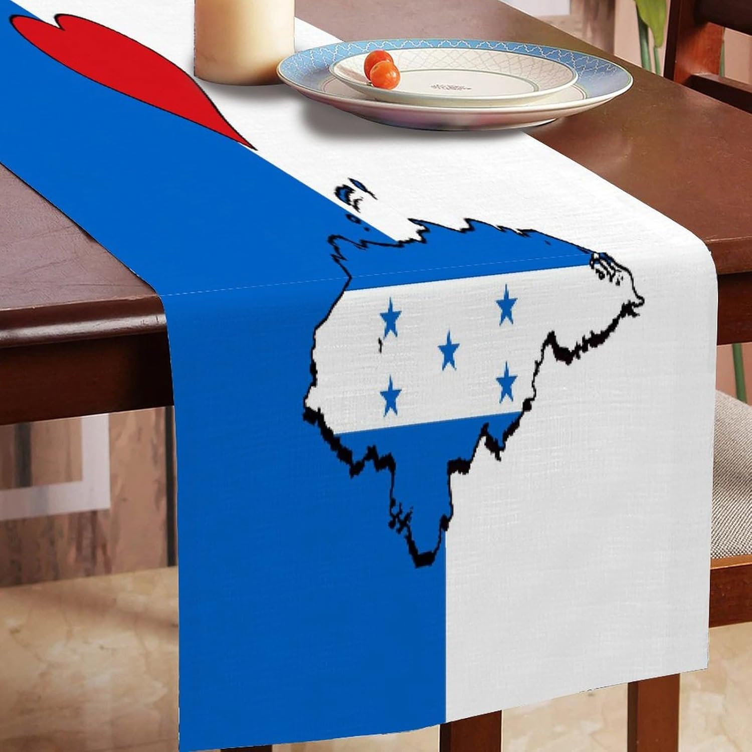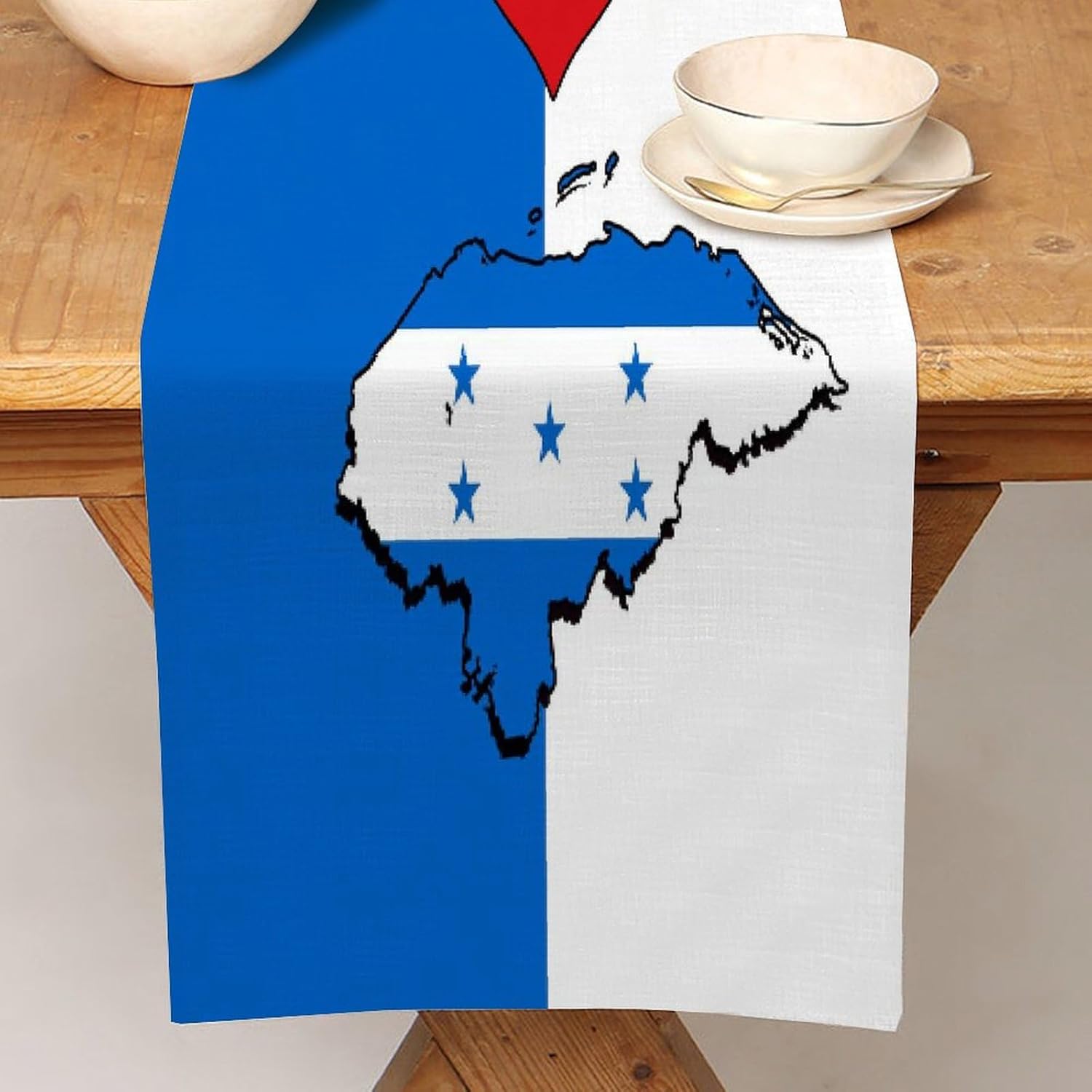 Runner da tavola con scritta "I Love My Country,Honduras, bandiera dell'Honduras, runner da tavolino da caffè, decorazione per tavolo da pranzo e cucina, decorazione per la casa e le feste, 33 x 178