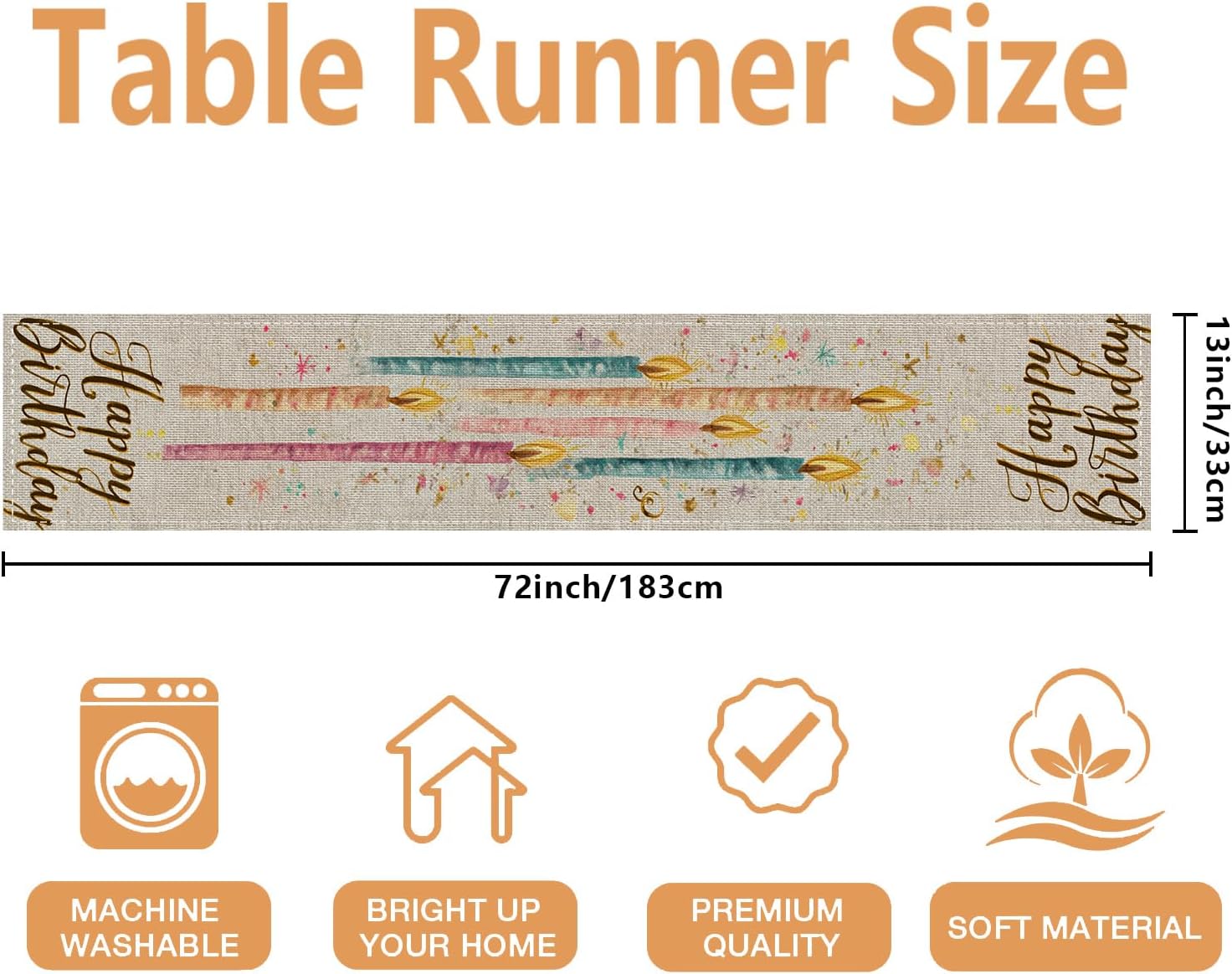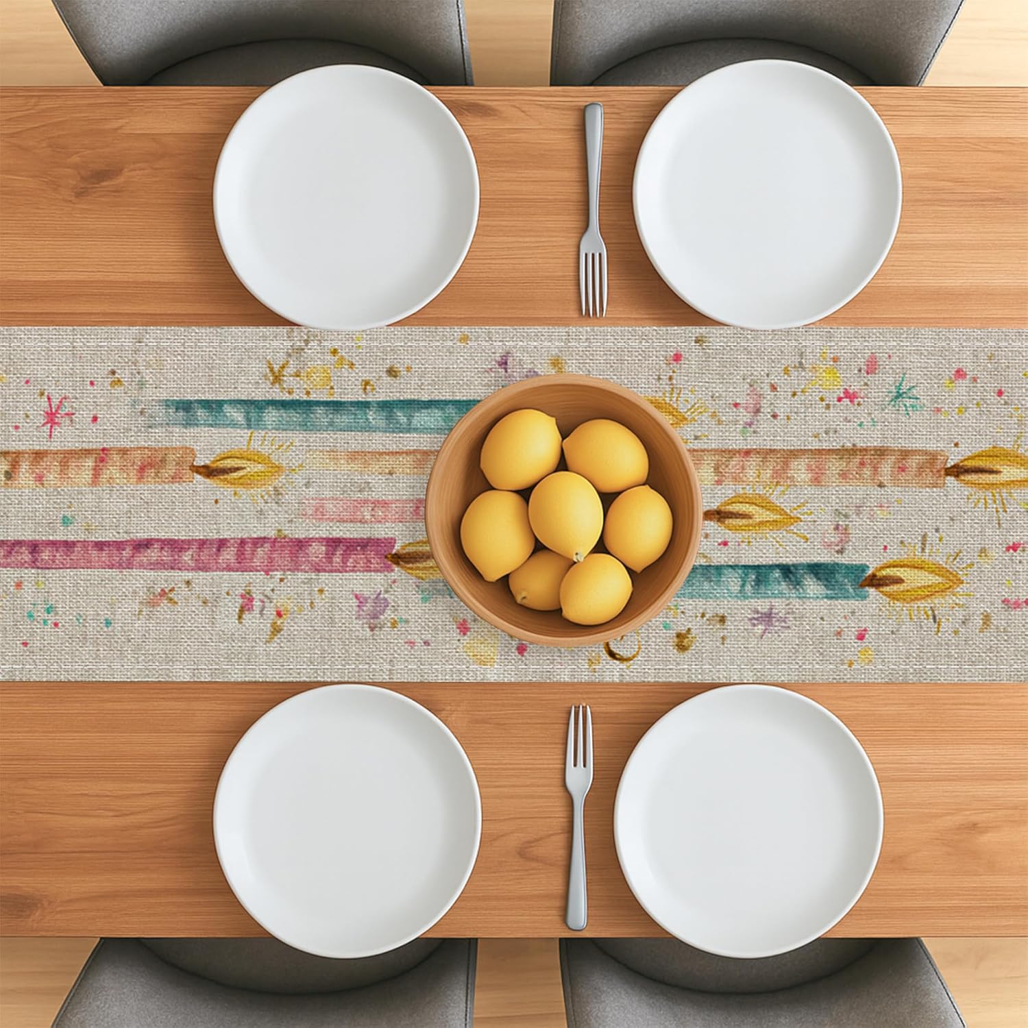 Morbido effetto lino: realizzato in 100% poliestere con una superficie opaca tessuta per un look ispirato alla fattoria Tavolo bilanciato: dimensionato per migliorare tavoli rettangolari per pasti in famiglia o riunioni da 4 a 6 persone Manutenzione senza sforzo: basta lavare in lavatrice delicatamente e asciugare a bassa temperatura per una cura a lungo termine del tessuto Tecnologia di inchiostro resistente allo sbiadimento: il processo di stampa avanzato blocca il colore per un impatto visivo di lunga durata Appello visivo creativo: un'opera d'arte distintiva aggiunge personalità e fascino alla tua sala da pranzo o festa