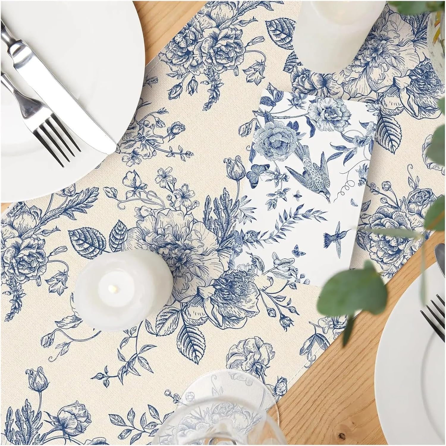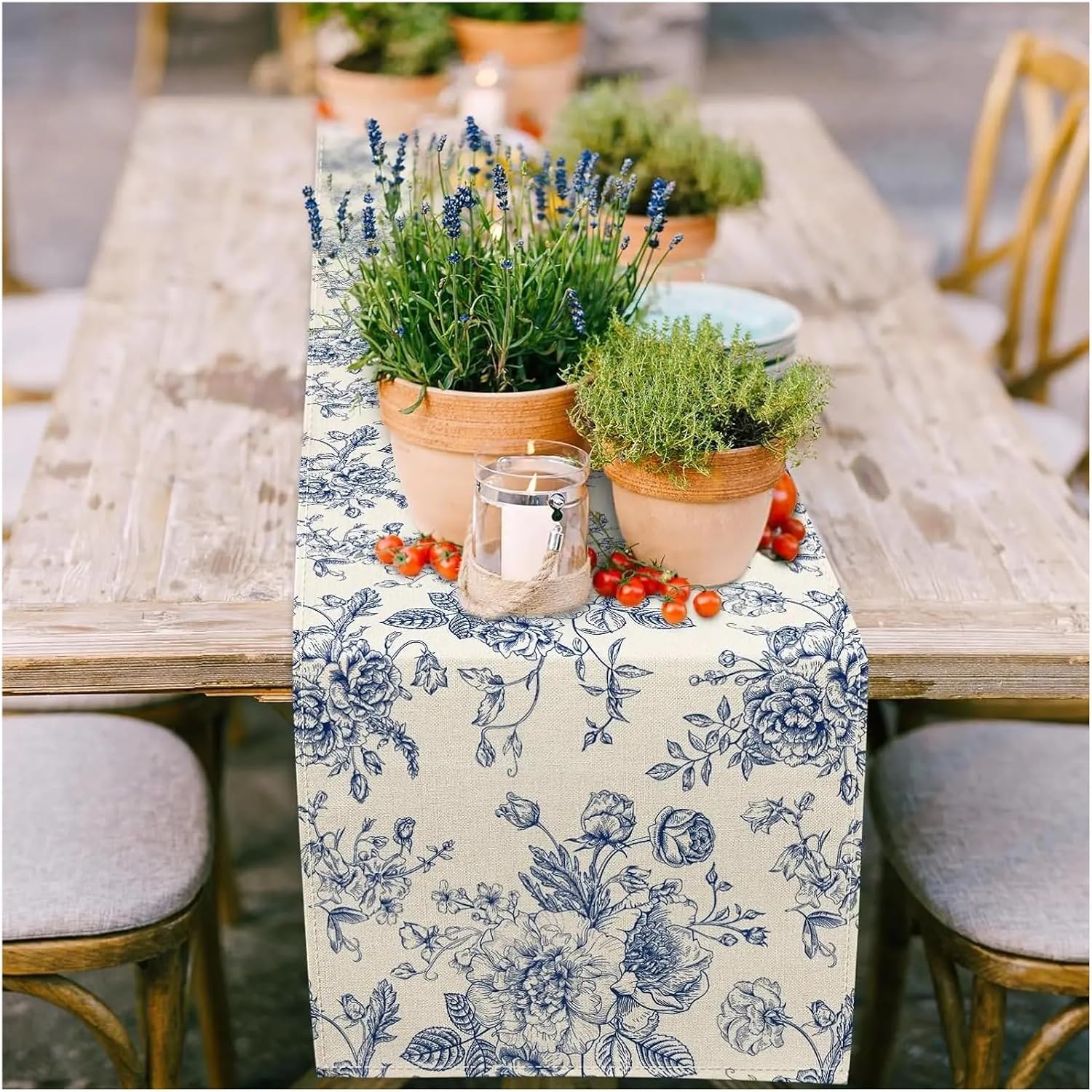 Runner da tavola Fiore Lino Comò Sciarpa Decor Riutilizzabile Cucina Tavolo pranzo Decorazioni for feste Runner di Natale(03,150x33cm 59x13inch)