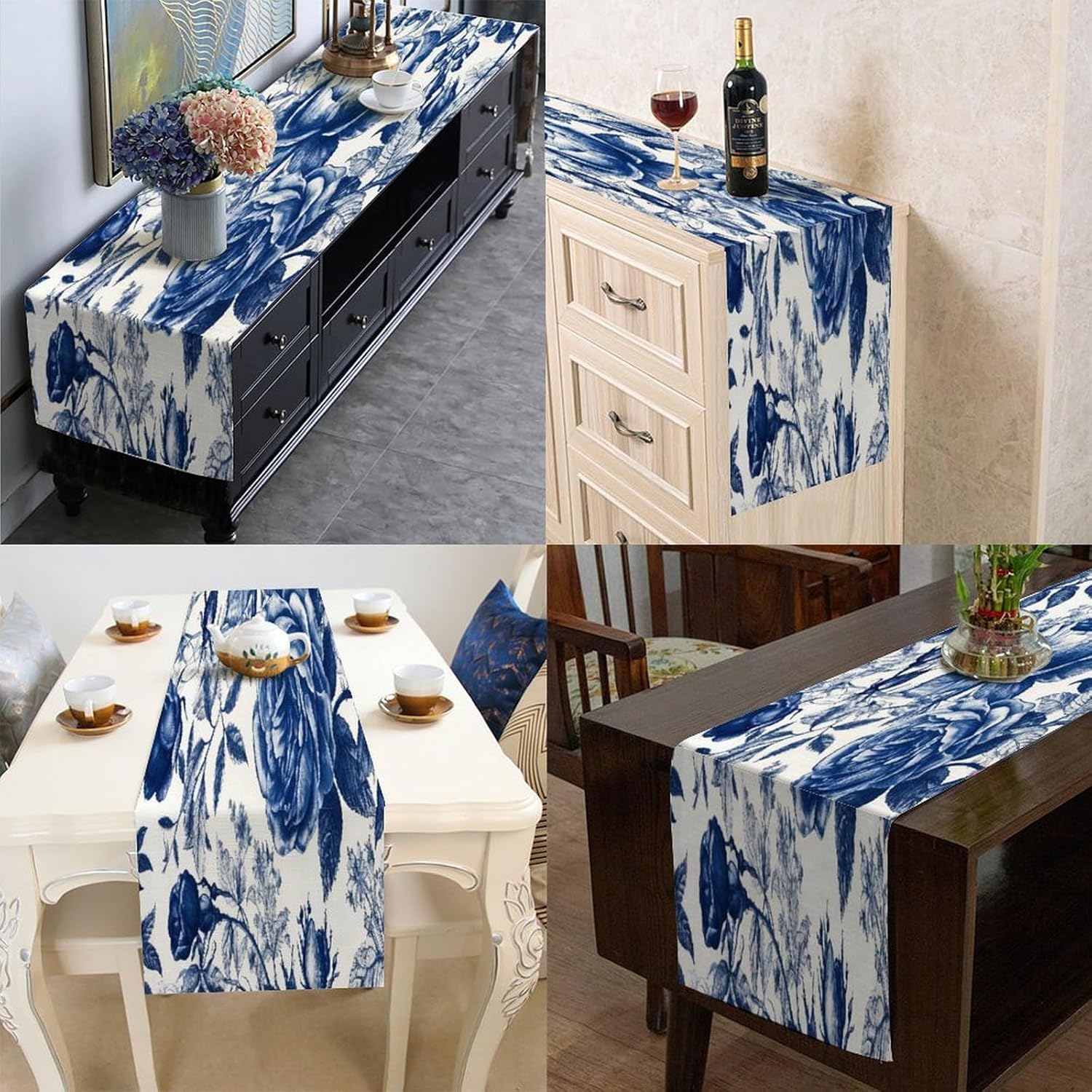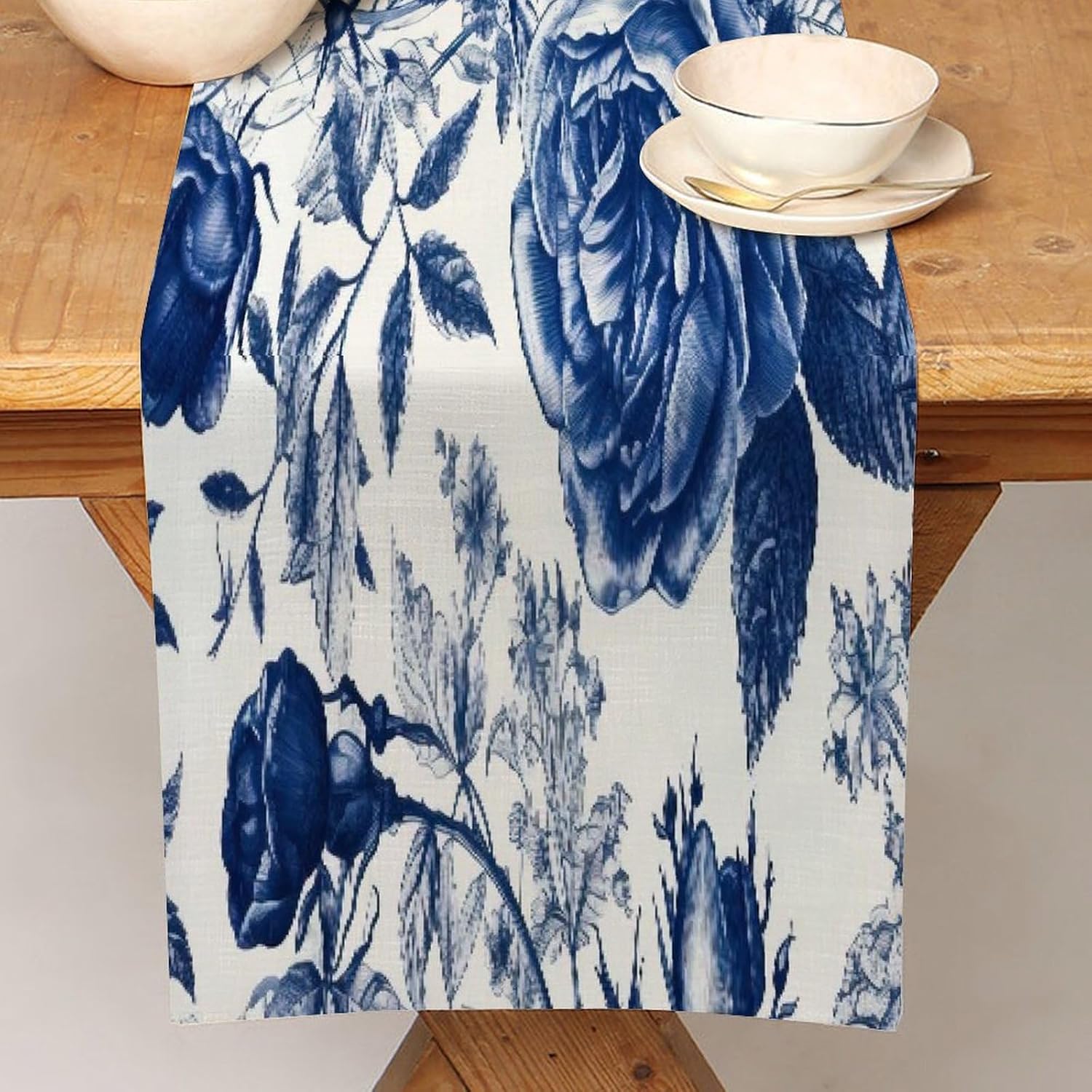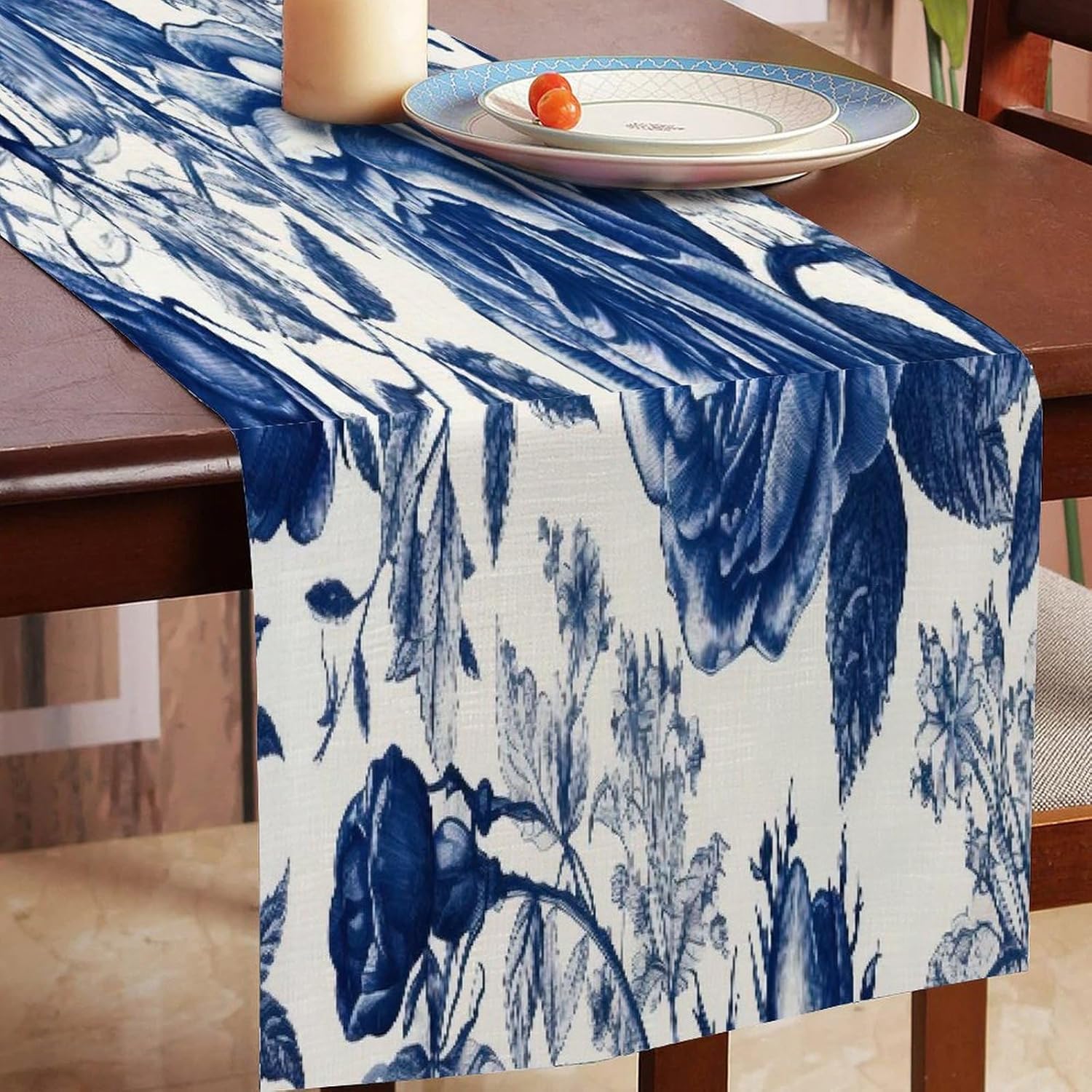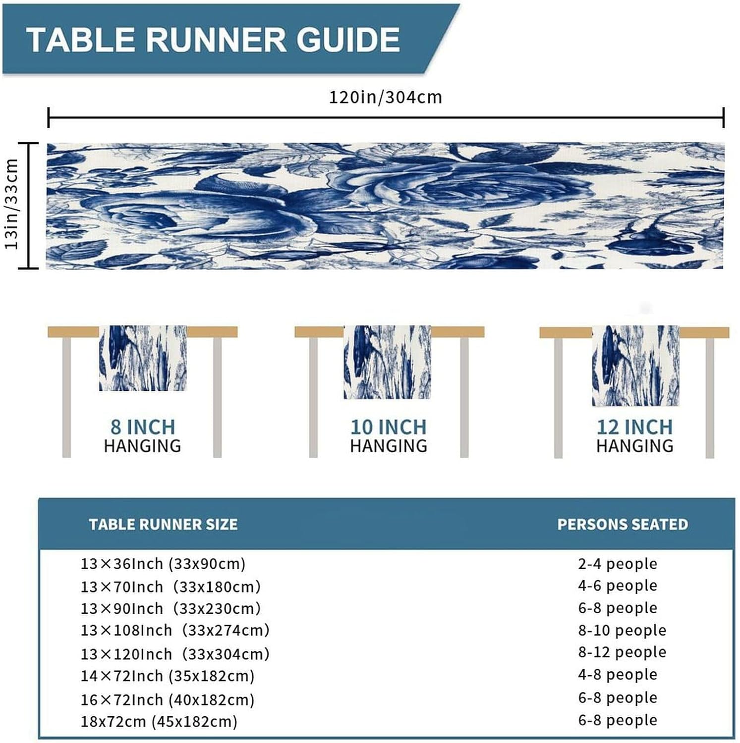 Runner da tavola floreale blu e bianco 33 x 304,8 cm, tovaglia decorativa per la casa, per cucina, sala da pranzo, feste, riunioni di famiglia, vacanze, runner da tavola decorazione