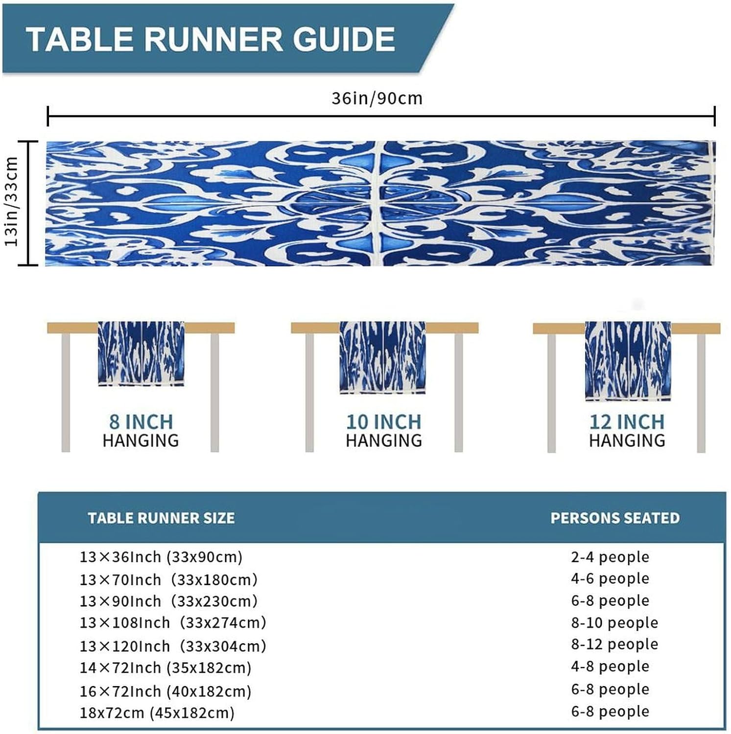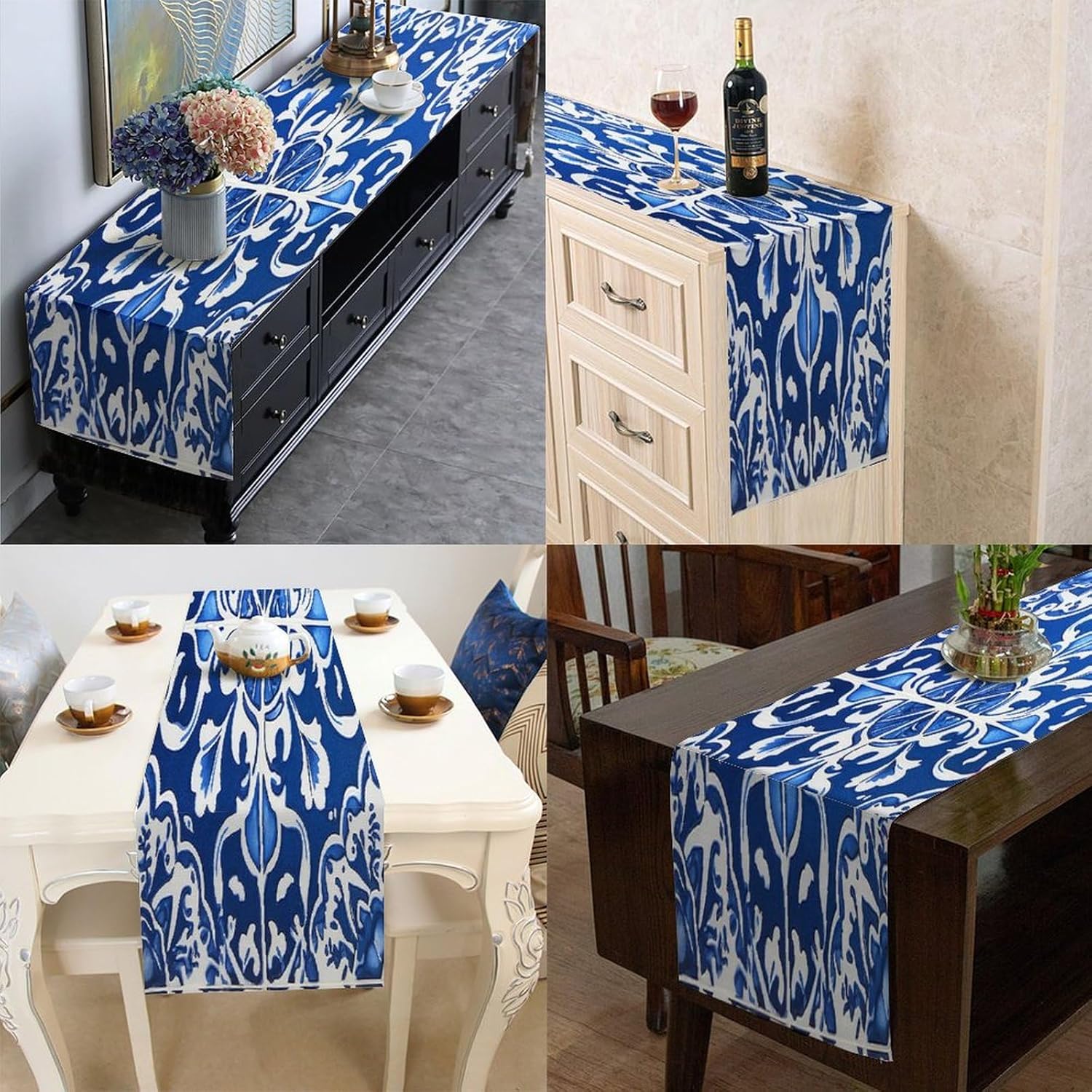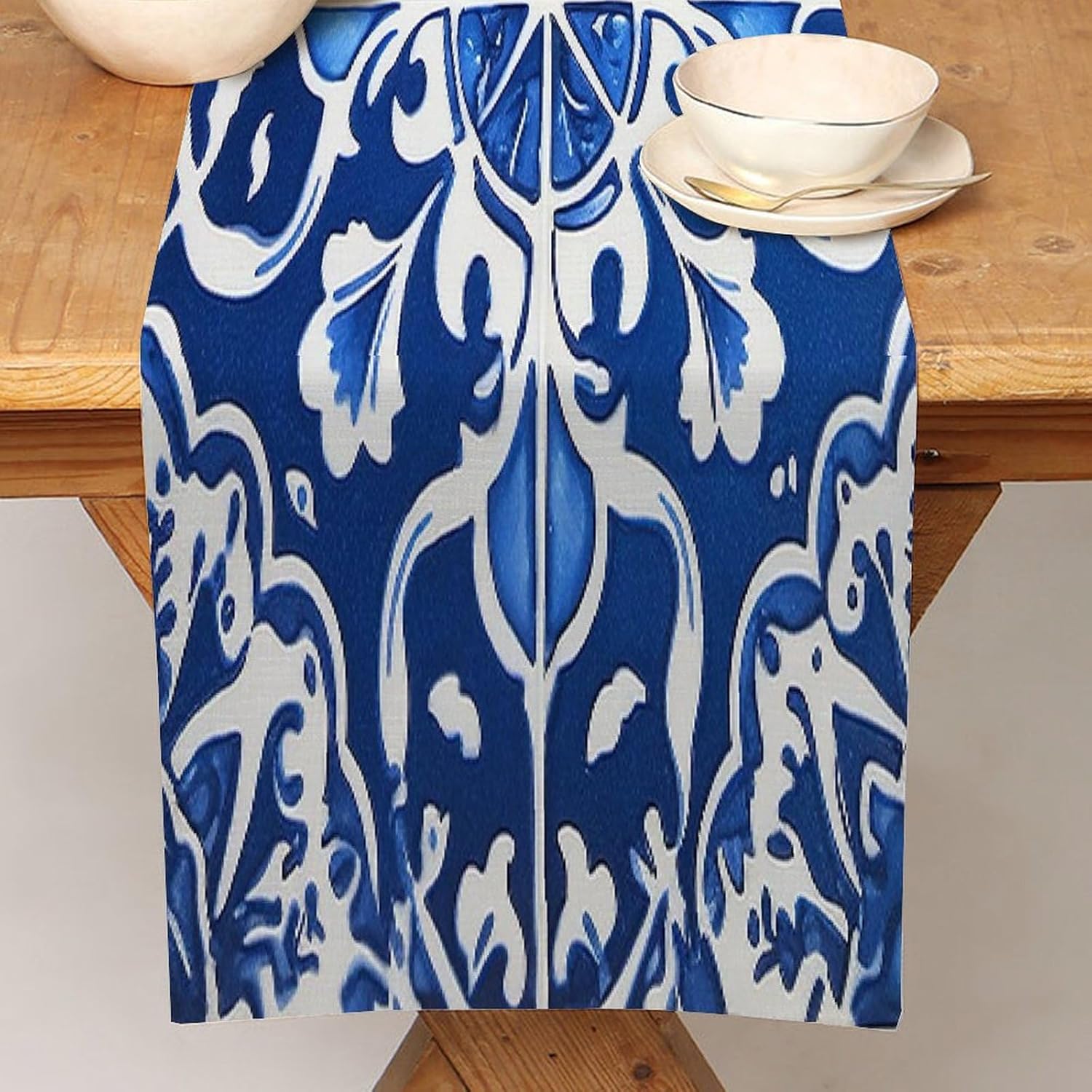 Runner da tavola floreale blu e bianco 33 x 91,4 cm, tovaglia decorativa per la casa, per cucina, sala da pranzo, feste, riunioni di famiglia, vacanze, runner da tavola decorazione