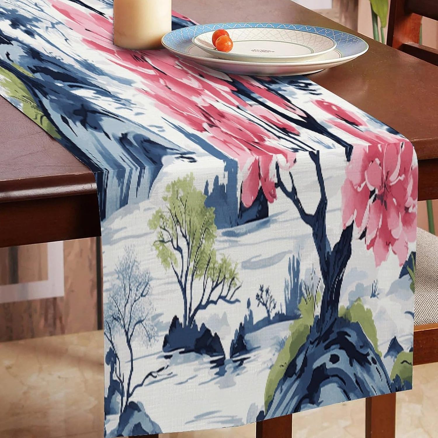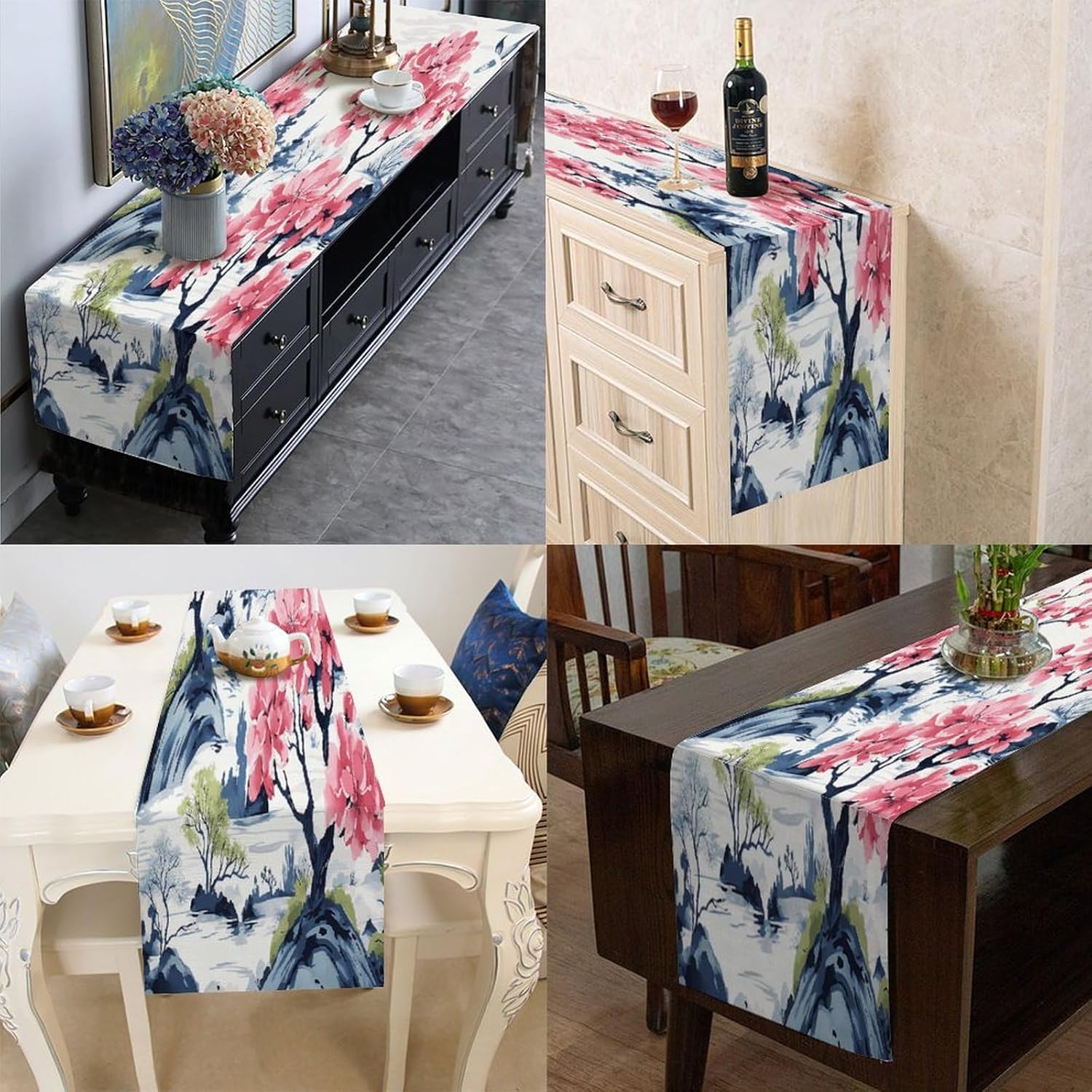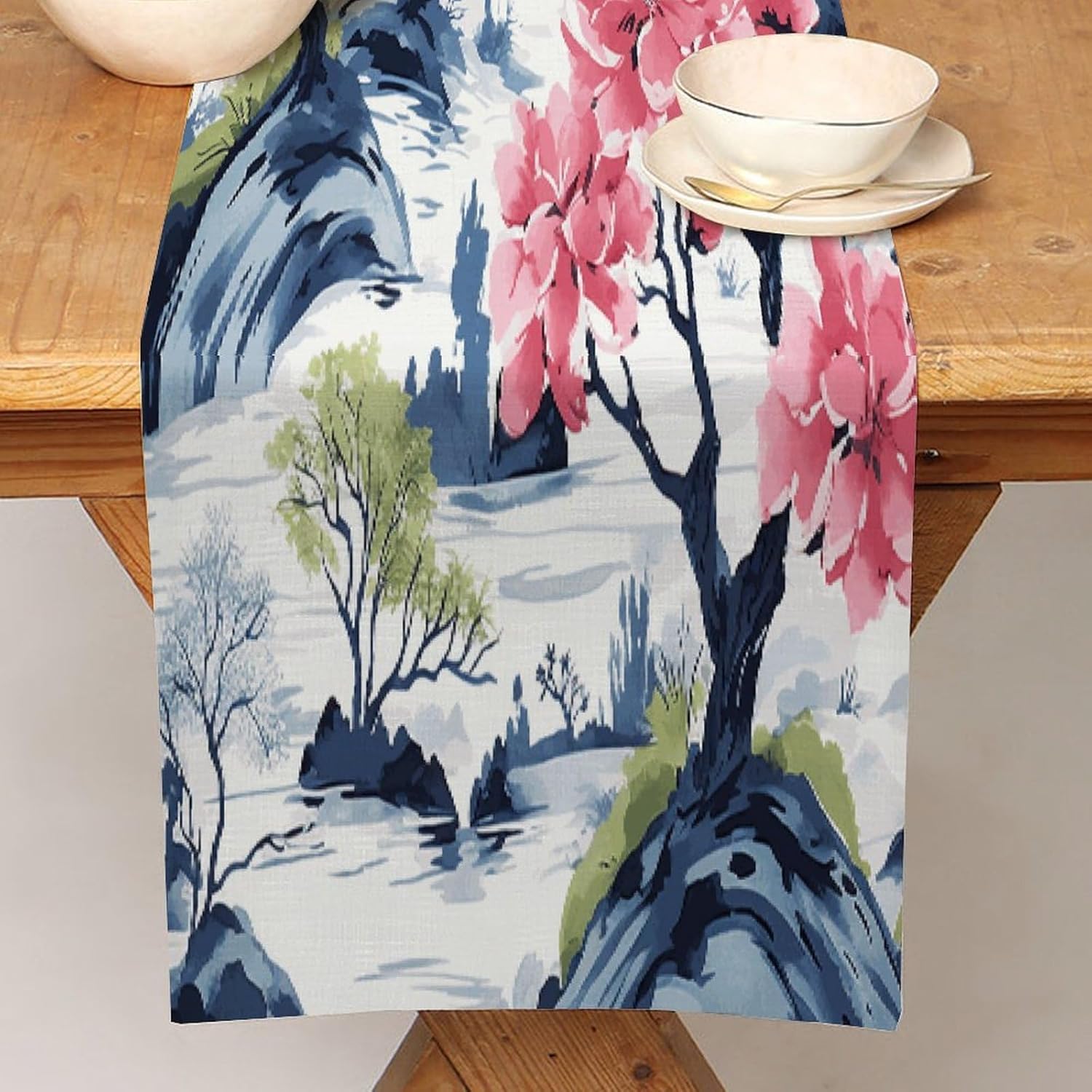 Runner da tavola floreale cineserie asiatico bonsai 13x36 pollici tovaglietta decorativa per cucina sala da pranzo festa di famiglia raccolta vacanza runner decorazione