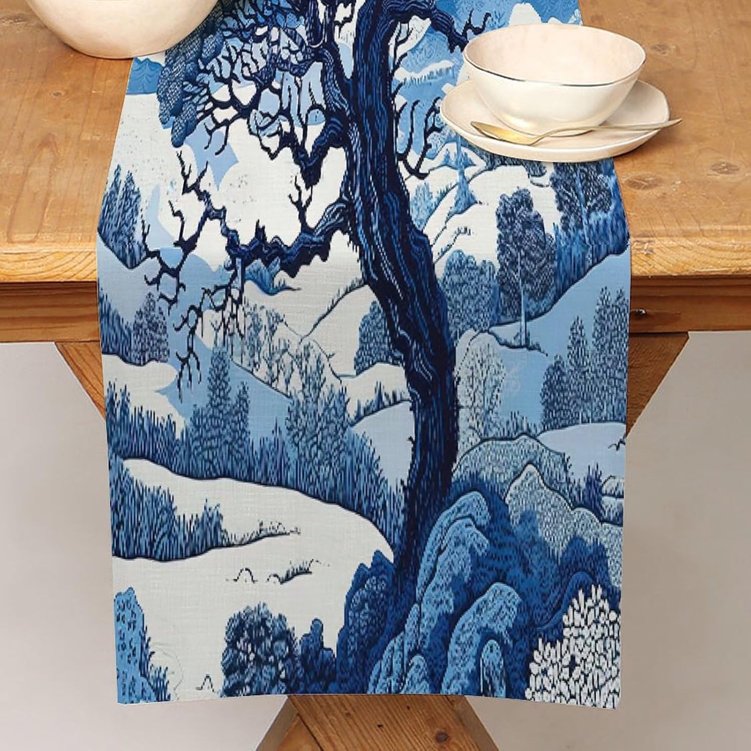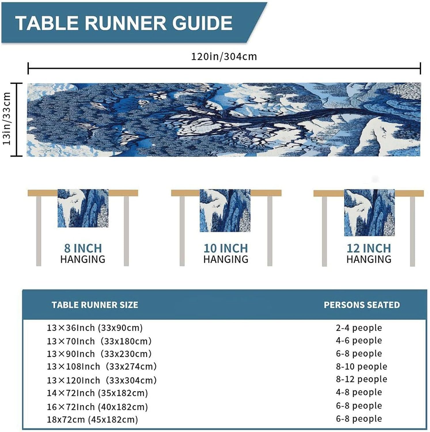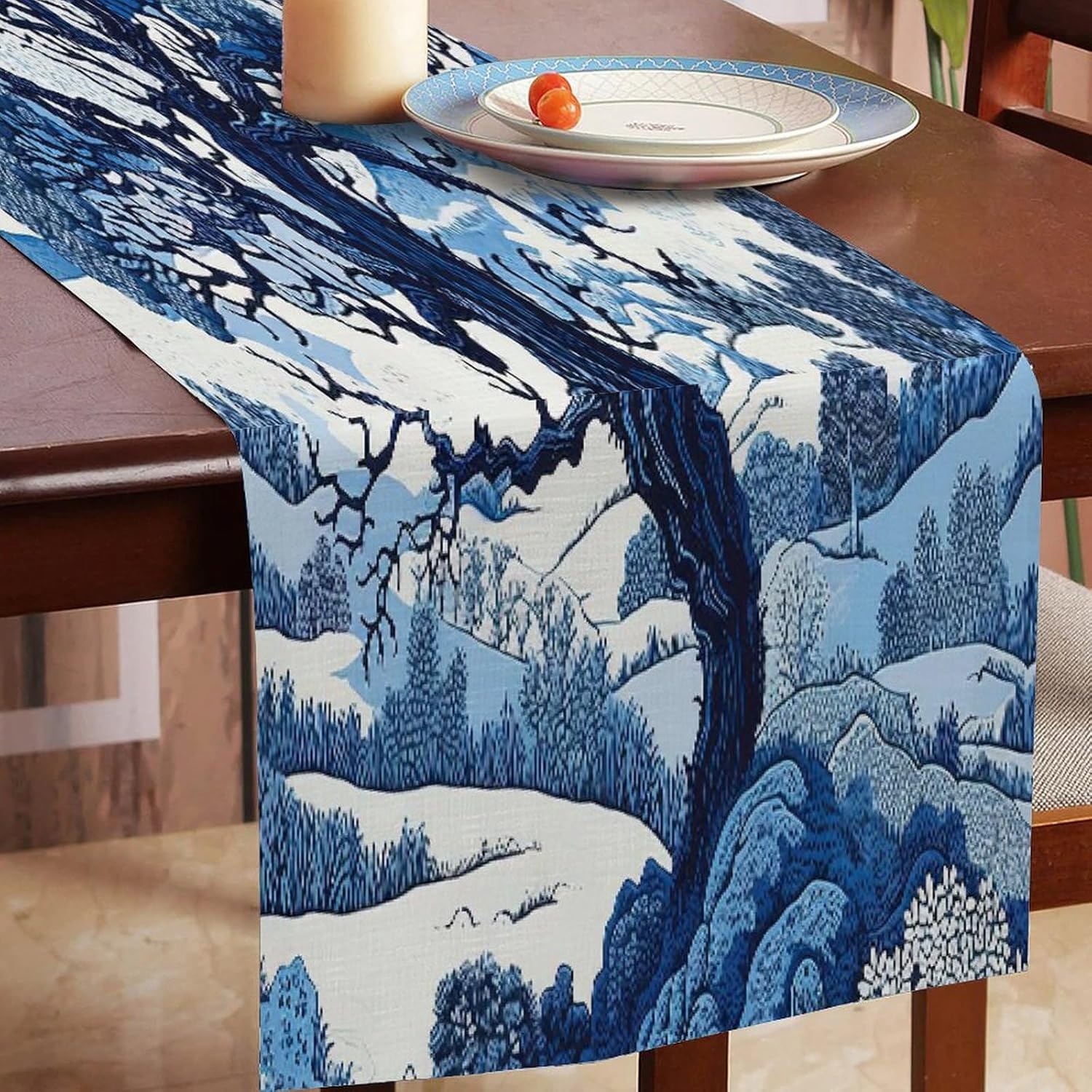 Runner da tavola in cineserie blu e bianco indaco, 33 x 304,8 cm, tovaglia decorativa per la casa, per cucina, sala da pranzo, feste, riunioni di famiglia, vacanze, runner da tavola decorazione