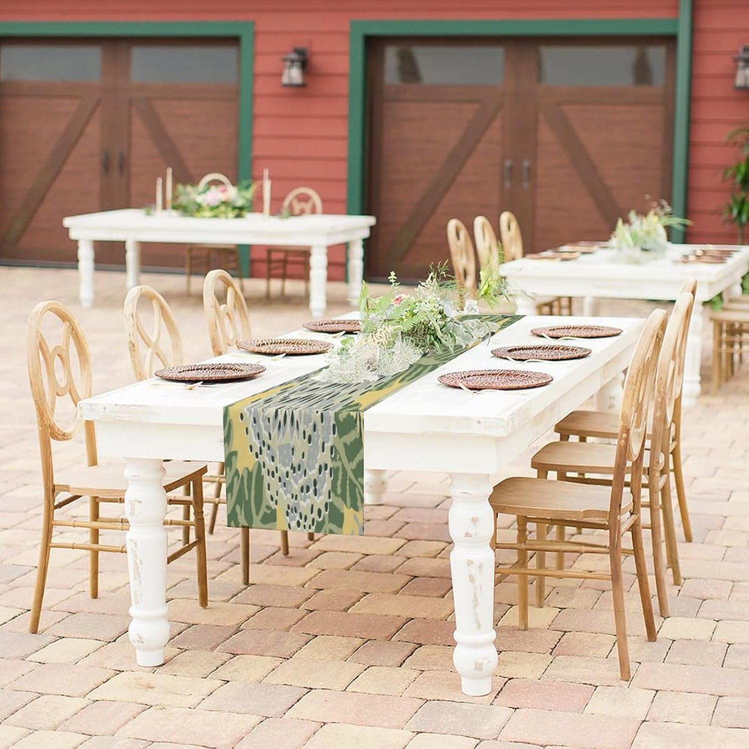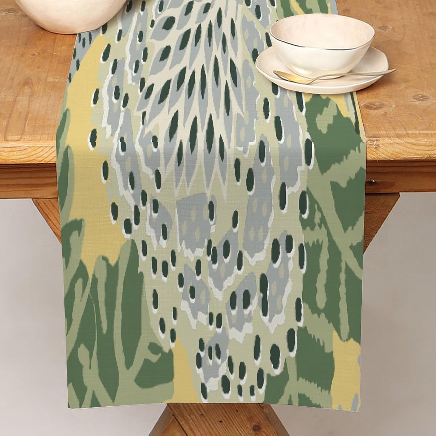Runner da tavola in cineserie floreale verde e bianco, 33 x 178 cm, runner da tavola in iuta rustico, facile da pulire, sciarpa per comò per soggiorno, cena, decorazione per la casa, regalo per la