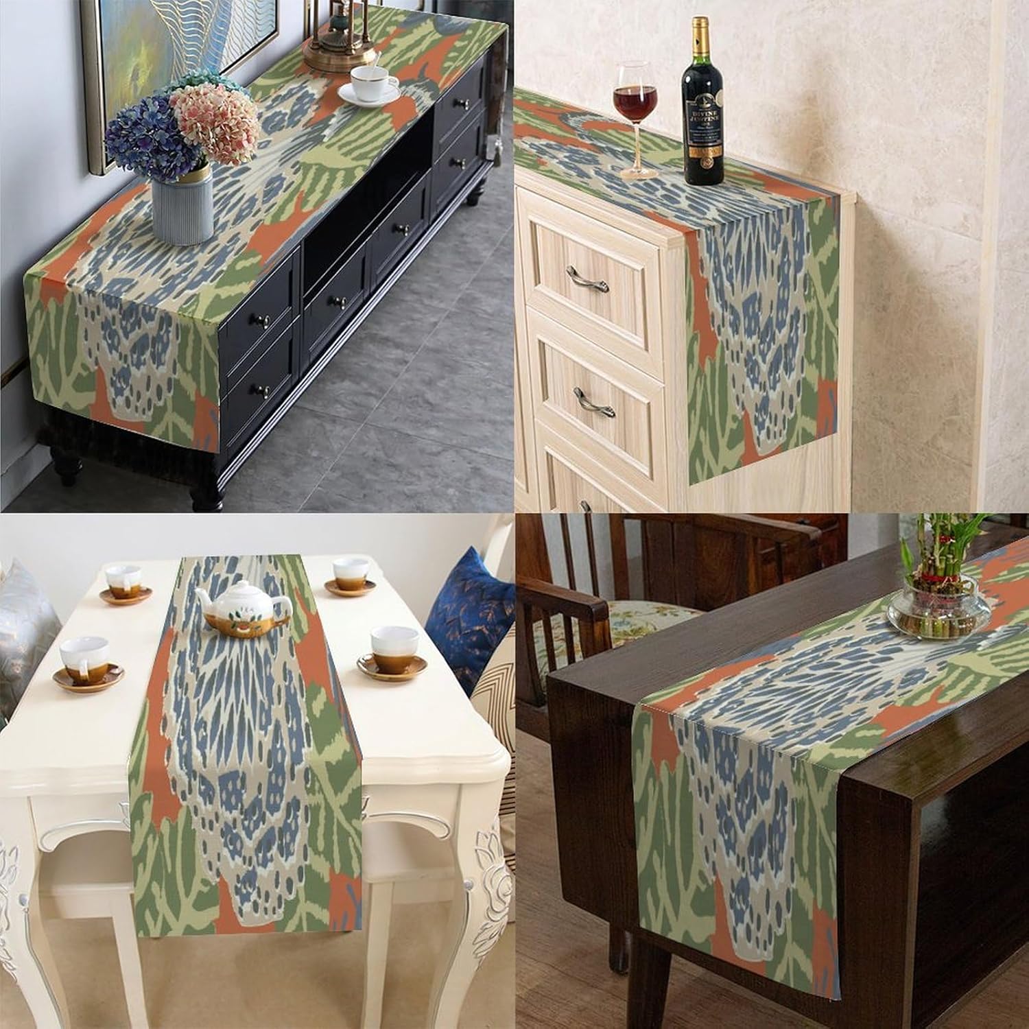 Dimensioni: 90 x 33 cm. Materiale: realizzato in morbido lino di cotone, comodo e durevole, resistente all'usura. Protegge la superficie del tavolo per la decorazione quotidiana della tavola, proteggendo la superficie del tavolo da pentole calde, graffi, danni causati dal calore. [Grande decorazione]: i runner da tavola sono un modo veloce, facile ed economico per aggiornare il tavolo della sala da pranzo, la camera da letto, il comò. Sarà il tuo compagno perfetto per colazione, pranzo e cena. Questa tovaglia dal design elegante aumenterà il fascino del tavolo da pranzo. [Uso multiuso]: alla ricerca di un runner da tavola per più occasioni? Non cercare più! Questo runner da tavola può andare dal ringraziamento alla festa di Natale ed è ottimo anche per una serata estiva informale. Sarà anche un regalo perfetto per i tuoi cari per l'inaugurazione della casa, il Ringraziamento o Natale. Ampia applicazione: caratterizzato da un motivo elegante con un bel bordo con nappe, sembra bello e vintage. Adatto per l'uso quotidiano, balli, matrimoni, feste o qualsiasi vacanza speciale. Ideale per uso interno ed esterno, come cucina, giardino, tè pomeridiano, caffè, cene, balcone, potlucks.
