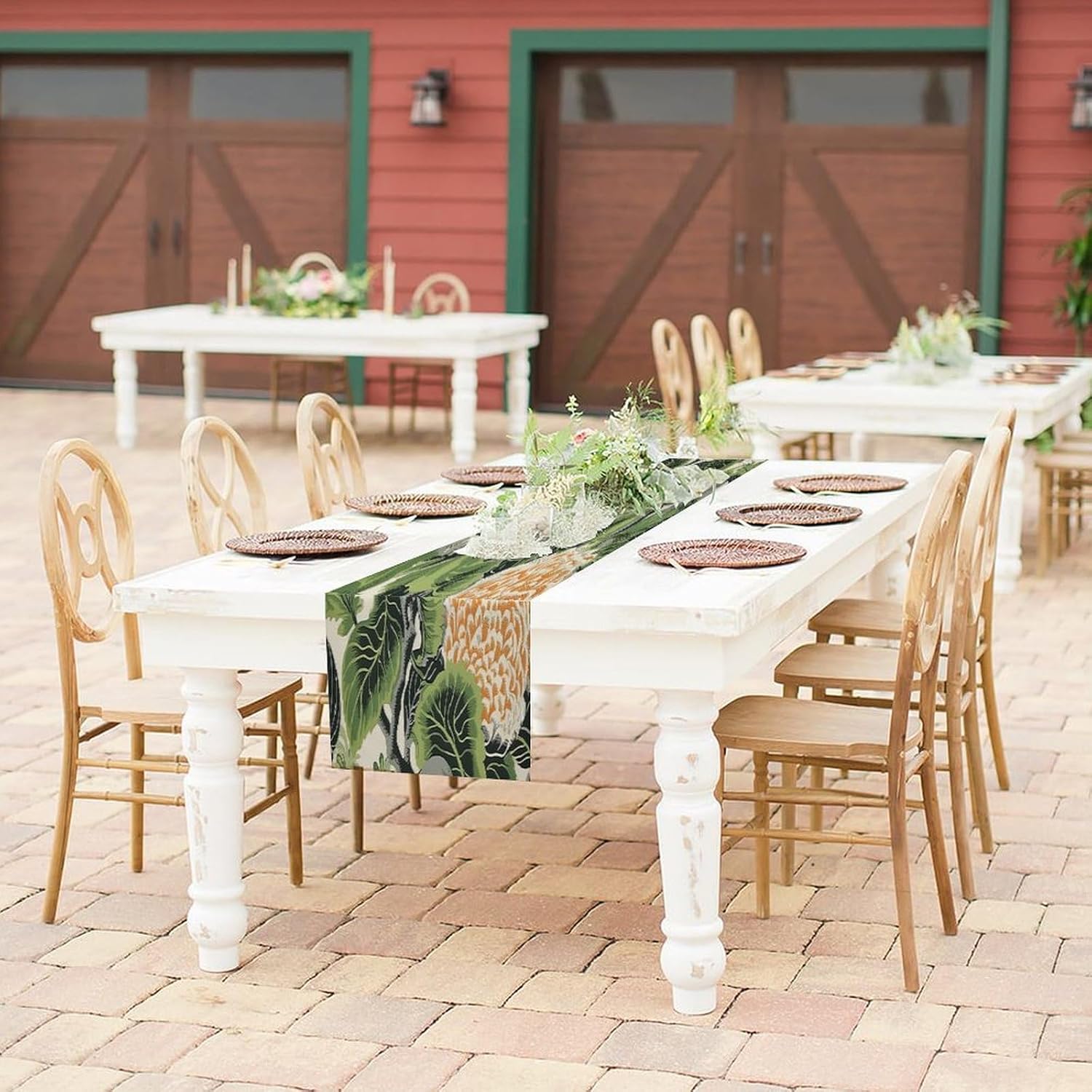 Dimensioni: 90 x 33 cm. Materiale: realizzato in morbido lino di cotone, comodo e durevole, resistente all'usura. Protegge la superficie del tavolo per la decorazione quotidiana della tavola, proteggendo la superficie del tavolo da pentole calde, graffi, danni causati dal calore. [Grande decorazione]: i runner da tavola sono un modo veloce, facile ed economico per aggiornare il tavolo della sala da pranzo, la camera da letto, il comò. Sarà il tuo compagno perfetto per colazione, pranzo e cena. Questa tovaglia dal design elegante aumenterà il fascino del tavolo da pranzo. [Uso multiuso]: alla ricerca di un runner da tavola per più occasioni? Non cercare più! Questo runner da tavola può andare dal ringraziamento alla festa di Natale ed è ottimo anche per una serata estiva informale. Sarà anche un regalo perfetto per i tuoi cari per l'inaugurazione della casa, il Ringraziamento o Natale. Ampia applicazione: caratterizzato da un motivo elegante con un bel bordo con nappe, sembra bello e vintage. Adatto per l'uso quotidiano, balli, matrimoni, feste o qualsiasi vacanza speciale. Ideale per uso interno ed esterno, come cucina, giardino, tè pomeridiano, caffè, cene, balcone, potlucks.