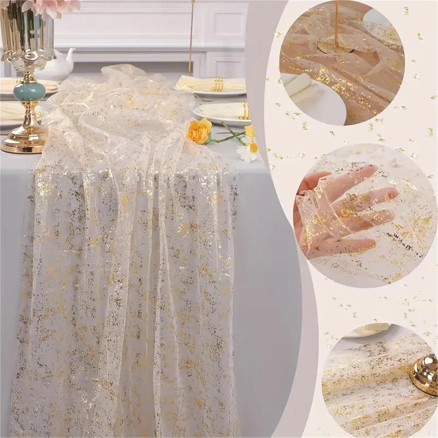 STILE ELEGANTE: la nostra tovaglia di garza aggiunge un tocco di eleganza a qualsiasi ambiente da pranzo, creando un'atmosfera sofisticata per i vostri pasti, migliorando l'arredamento della vostra tavola con il suo tessuto trasparente, facendo sentire ogni incontro speciale USO VERSATILE: Questa tovaglia velata in garza è ideale per varie occasioni, dalle cene casuali in famiglia ai matrimoni formali, per elevare l'arredamento dei vostri eventi senza sforzo, godendo della sua versatilità come sfondo elegante per ogni occasione FACILE DA STRATIFICARE: il runner da tavola lungo in garza può essere stratificato con altre tovaglie per un aspetto più strutturato, da mescolare e abbinare con colori e motivi diversi, per personalizzare la decorazione della tavola in modo creativo e ottenere uno stile unico che rifletta il vostro gusto IDEALE PER I MATRIMONI: Le nostre decorazioni per tavoli da matrimonio in garza aggiungono romanticismo e fascino a qualsiasi allestimento nuziale, creando paesaggi da sogno che catturano l'attenzione, esaltando la bellezza del vostro giorno speciale, creando ricordi indimenticabili con una decorazione elegante LEGGERO E ARIOSO: la natura trasparente del nostro runner da tavola in garza permette alla luce di filtrare meravigliosamente, creando un'atmosfera ariosa e aperta al vostro spazio da pranzo, godetevi il tocco stravagante che aggiunge al vostro arredamento, portando un senso di leggerezza alla vostra tavola