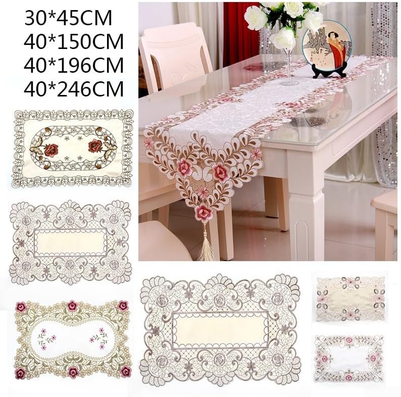 Motivo floreale: questo runner da tavolo in pizzo floreale splendidamente ricamato aggiungerà un tocco elegante ad ogni occasione. Il suo design moderno lo rende adatto sia ad occasioni casual che formali. MULTIUSO - Perfetto per decorare tavoli in occasione di celebrazioni come anniversari e lauree o per usarlo in modo creativo come decorazione sui vestiti. È un complemento a qualsiasi evento. MATERIALE DI FACILE CURA: Realizzato in morbido tessuto di pizzo jacquard facile da pulire e mantenere. Ricordati di lavarlo separatamente dagli altri tessuti per preservarne la delicata bellezza. VARIE MISURE: Disponibile in diverse misure (40x150cm, 40x196cm, 40x246cm, 30x45cm). Troverai la soluzione giusta per le tue esigenze specifiche. Controllare attentamente le dimensioni dei dettagli prima dell'acquisto. Scelta colorata: disponibile in cinque colori vivaci (1#/2#/3#/4#/5#), così puoi scegliere la tonalità perfetta per abbinarla al tuo stile personale e migliorare l'arredamento della tua casa.