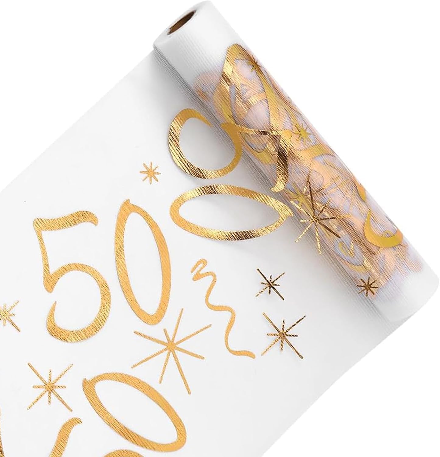 Realizzato in poliestere resistente, questo rotolo decorativo da tavolo da 28 cm x 10 m presenta una flessibilità di taglio facile e riutilizzabile per ripetute composizioni festive La trama a maglie trasparenti con accento metallico crea decorazioni dimensionali da tavola pur rimanendo resistente alle pieghe per un'installazione senza soluzione di continuità su vari layout di celebrazione Trasforma tavoli da pranzo, espositori per dessert e stazioni in zone di celebrazione coordinate per feste di compleanno, anniversari per adulti o eventi di comings of age per organizzatori di famiglie e feste che cercano decorazioni sofisticate per adulti che celebrano le pietre miliari del loro compleanno o anniversario Migliora la tua celebrazione di compleanno con questo lussuoso runner da tavola in rete con finiture dorate, progettato per aggiungere istantaneamente eleganza a qualsiasi festa per adulti