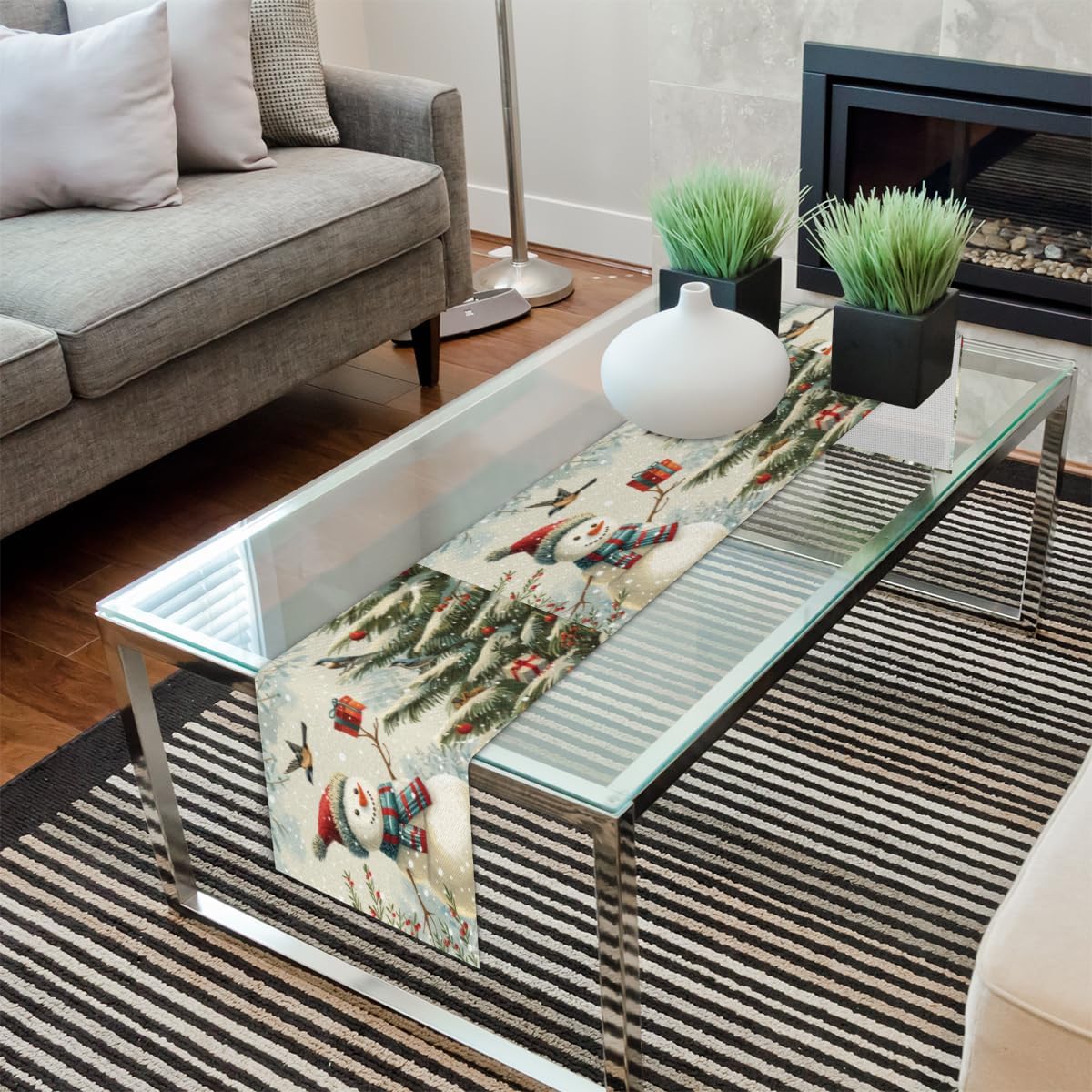 Runner da tavola natalizio con alberi di neve e fiocchi di neve, 33 x 182 cm, decorazione per la casa, feste, inverno, Natale