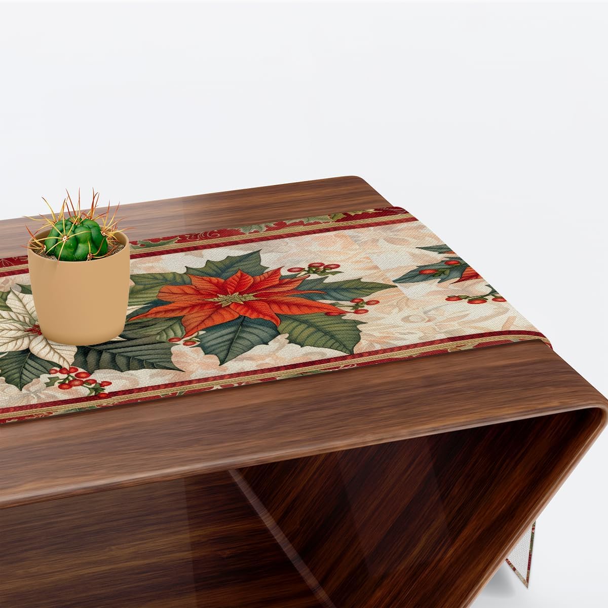 Runner da tavola natalizio con stella di Natale, 33 x 183 cm, decorazione per tavolo da pranzo per la casa e le feste