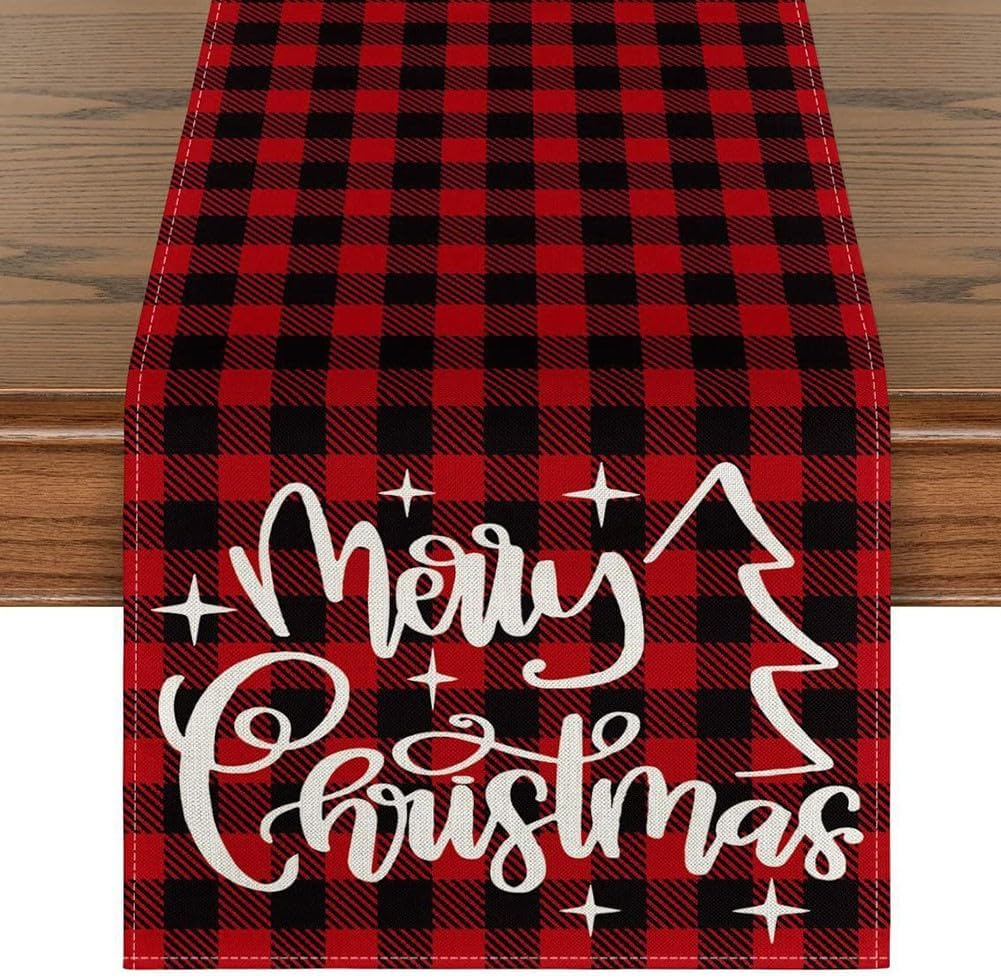 TEMA NATALIZIO: questo runner da tavola in lino Merry Christmas presenta un motivo a quadri festoso e un design ispirato alle vacanze che aggiungerà un tocco di allegria stagionale al tuo tavolo da pranzo. Materiale durevole: questo runner da tavolo in lino è progettato per un uso duraturo. È resistente all'usura, quindi può essere utilizzato per più stagioni natalizie. 【Dimensioni generose】 Misura 13 "x 90" questo runner da tavolo è la dimensione perfetta per la maggior parte dei tavoli, fornendo un'ampia copertura e creando un bellissimo display durante le tue vacanze. 【Decorazione versatile】 Con la sua pregevole fattura e la stampa ad alta definizione, questa tovaglia rettangolare non serve solo come decorazione da tavolo, ma funge anche da barriera protettiva per la superficie del tavolo. 【Ampia applicazione】 Questa tovaglia decorativa natalizia non è adatta solo per tavoli da pranzo, ma può anche essere utilizzata per decorare caminetti, mobili TV, scarpiere, comodini o anche da appendere come sfondo alla parete, rendendola una decorazione versatile per le tue decorazioni e feste natalizie.