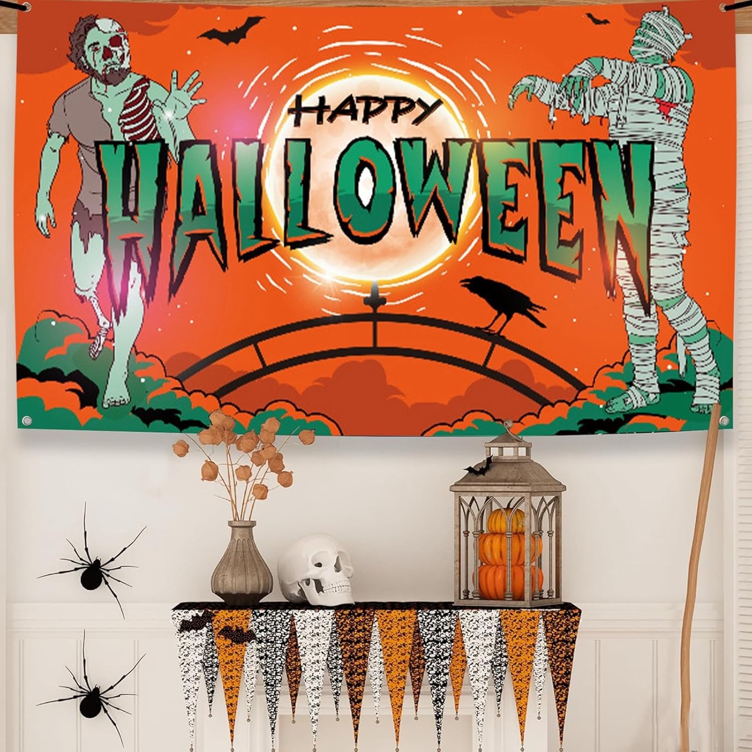 Deve avere fornitura di Halloween appositamente progettato, questo striscione di decorazioni di Halloween sicuramente un'atmosfera per Halloween, e si può usare con ghirlanda di Halloween come muro di pipistrelli, strega, . Grande Halloween, 1 pezzo Happy Halloween, 1,85 m x 1,1 m, perfetto per decorazioni per feste di Halloween, decorazioni di Halloween per casa, cabina fotografica di Halloween. Rimani felice all'interno e all'esterno, questo striscione di Halloween felice viene fornito con corda per appenderlo, puoi usarli per casa, parete, finestra, porta del garage, caminetto, soggiorno, recinzioni, cortile e scattare foto per mantenere il tuo ricordo felice Riutilizzabile e facile da tenere la foto di Halloween è realizzata in poliestere robusto, forniture per feste di Halloween, lavabile, durevole e riutilizzabile e facile da trasportare e conservare per anni. È una bella decorazione di Halloween per interni, perfetta per pareti di Halloween, casa di Halloween, stanza di Halloween, pipistrelli decorazione di Halloween, decorazioni per la tavola di Halloween, decorazioni di Halloween per streghe, Halloween per fotografia.