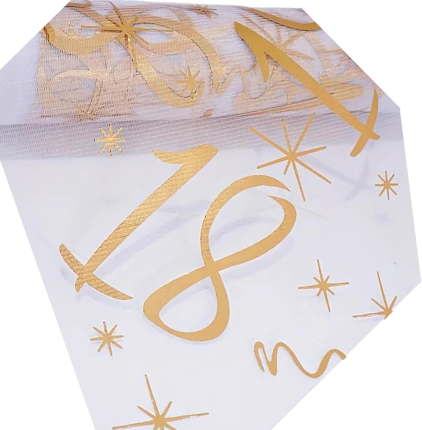 La trama a maglie trasparenti con accento metallico crea decorazioni dimensionali da tavola pur rimanendo resistente alle pieghe per un'installazione senza soluzione di continuità su vari layout di celebrazione Realizzato in poliestere resistente, questo rotolo decorativo da tavolo da 28 cm x 10 m presenta una flessibilità di taglio facile e riutilizzabile per ripetute composizioni festive Migliora la tua celebrazione di compleanno con questo lussuoso runner da tavola in rete con finiture dorate, progettato per aggiungere istantaneamente eleganza a qualsiasi festa per adulti per organizzatori di famiglie e feste che cercano decorazioni sofisticate per adulti che celebrano le pietre miliari del loro compleanno o anniversario Trasforma tavoli da pranzo, espositori per dessert e postazioni regalo in zone di celebrazione coordinate per feste di compleanno, anniversari per adulti o eventi di comings of age