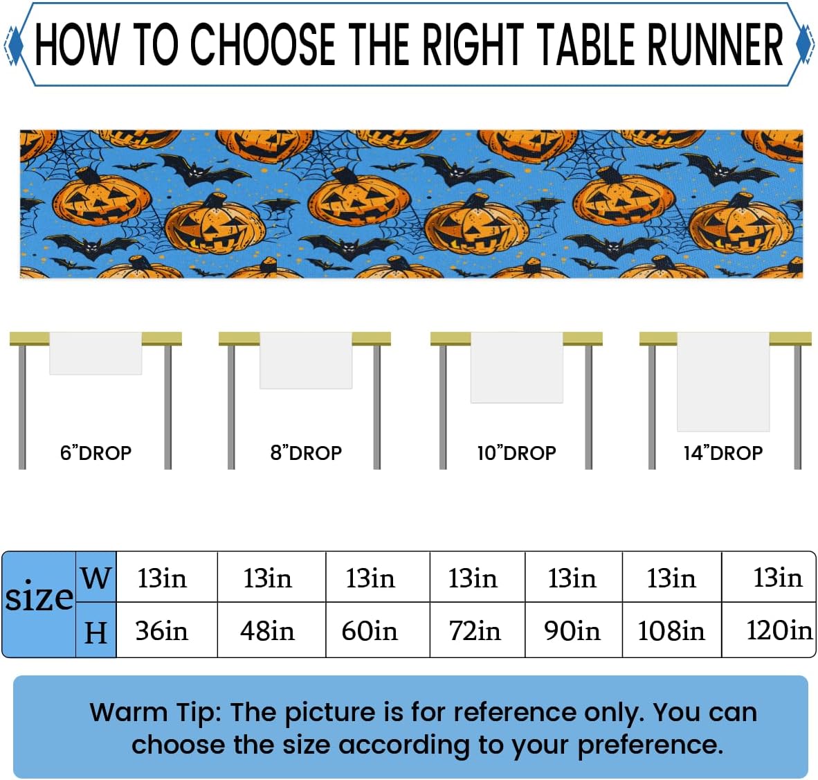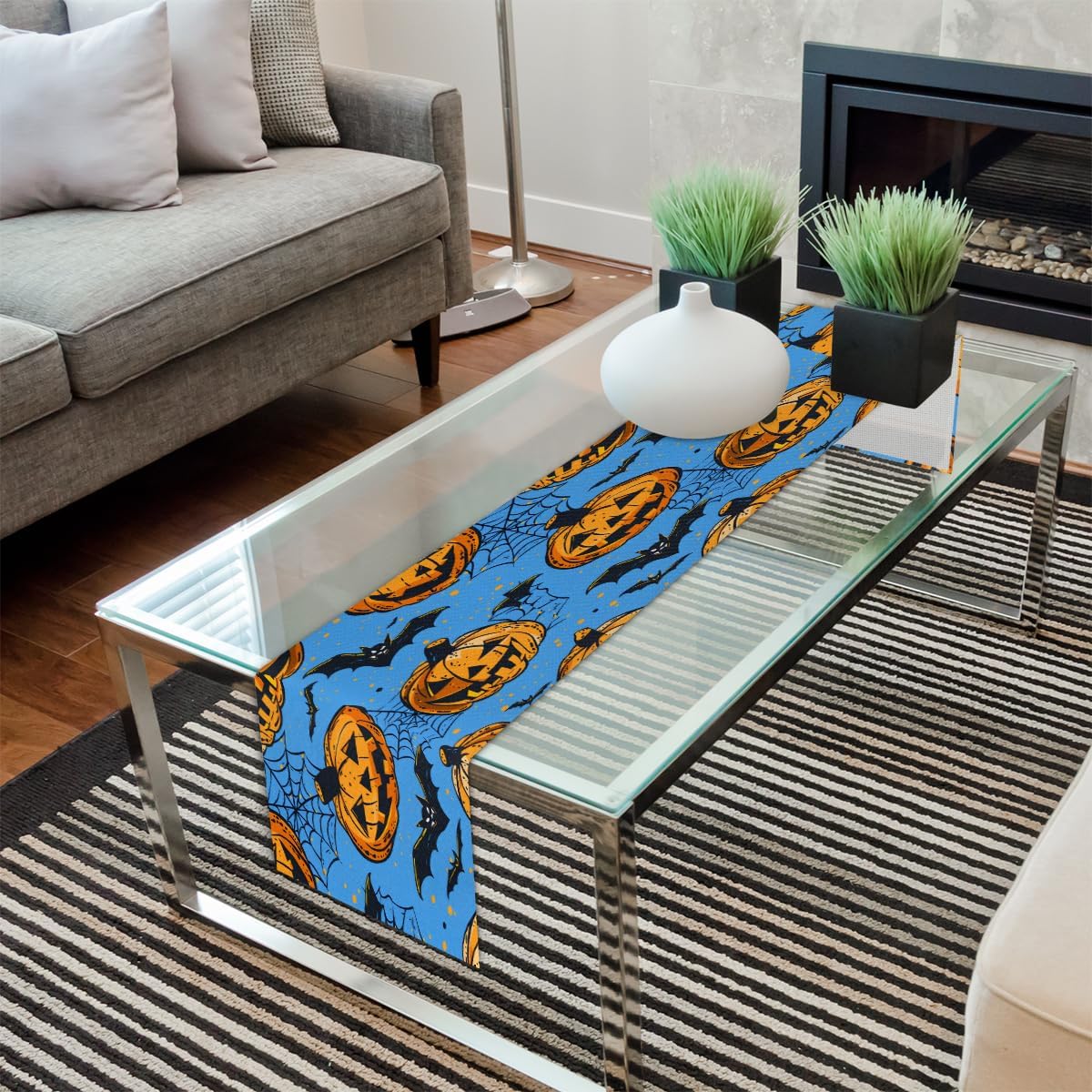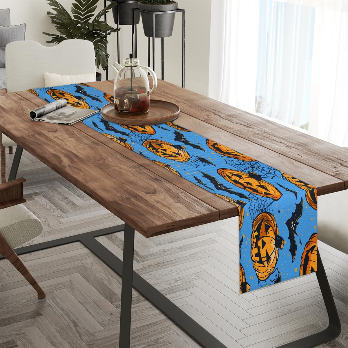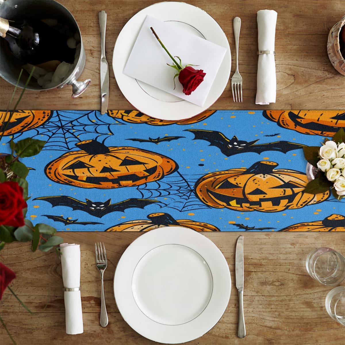 Runner da tavola per Halloween, 33 x 182 cm, decorazione per tavolo da pranzo per la casa, decorazione per feste in rete, zucca pipistrello