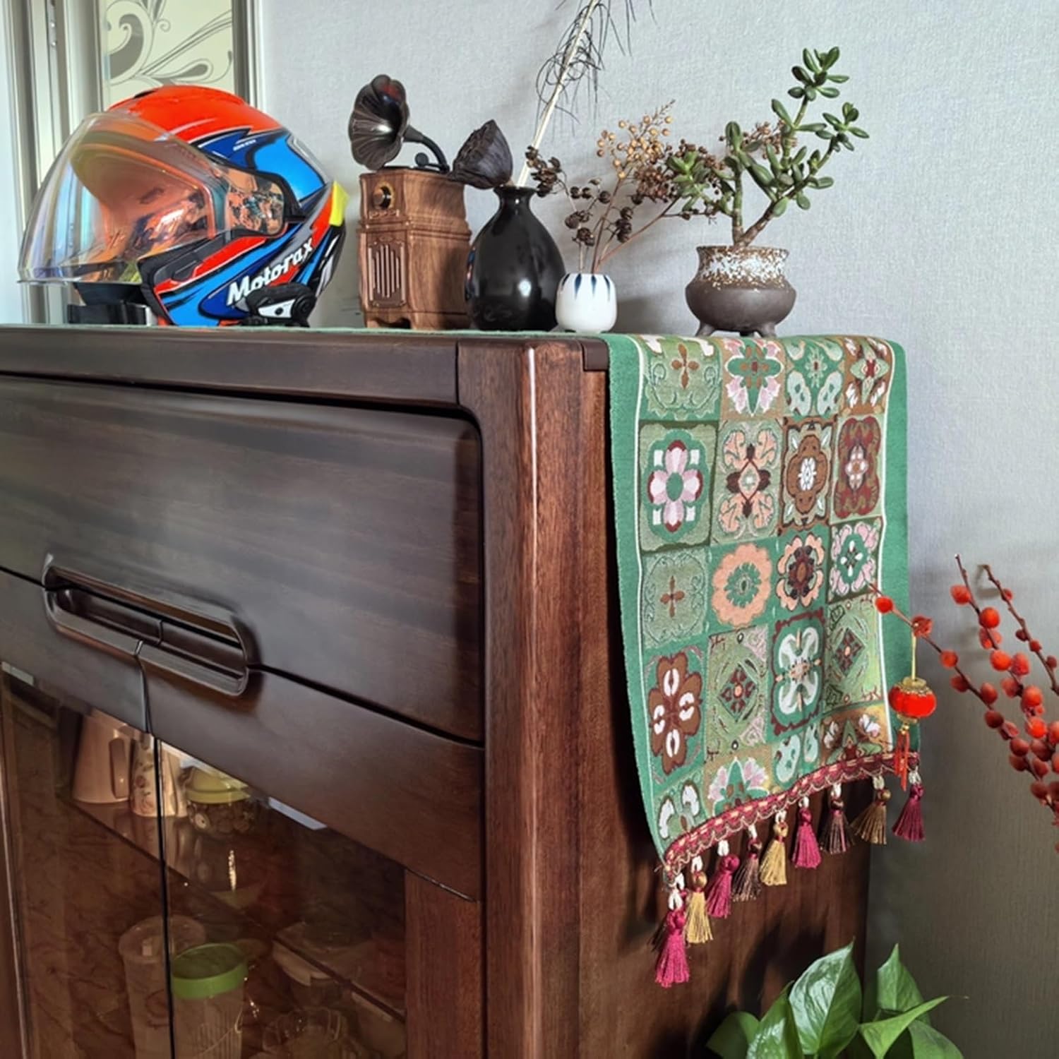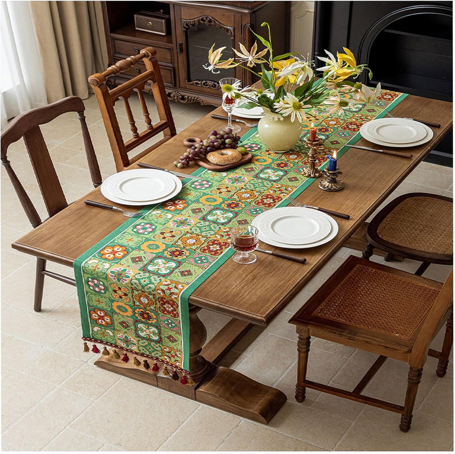 Pulizia e manutenzione: per mantenere la qualità del prodotto e conservarne l'aspetto nuovo, si consiglia di lavarlo separatamente in acqua fredda a 30 °C utilizzando un detergente delicato Sottopiedi per tavolo da pranzo: realizzati con cura, questi sottopiedi hanno una consistenza morbida e delicata sulla pelle. Proteggono la superficie del tavolo da pranzo, resistendo efficacemente alle gocce di cera delle candele, agli schizzi di liquidi e ai graffi quotidiani, prolungando così la durata dei mobili Caratteristiche del design: incorporando elementi rustici in stile country, la tovaglia è realizzata con frange in cotone intrecciato come corpo principale. Il processo di bordatura migliora la durata dei bordi ed esalta la delicata consistenza complessiva, conferendo alla zona pranzo un'atmosfera elegante Protezione resistente al calore: lo strato resistente al calore di qualità superiore blocca efficacemente i segni di calore, i graffi e la corrosione delle macchie. Si consiglia di evitare l'esposizione prolungata alla luce solare diretta per prevenire differenze di colore causate dall'esposizione ai raggi UV Applicazione: la tovaglia è adatta a diversi scenari domestici, tra cui basi per macchine da caffè, tavoli da pranzo, tavolini da caffè in vetro, credenze e togliabiti