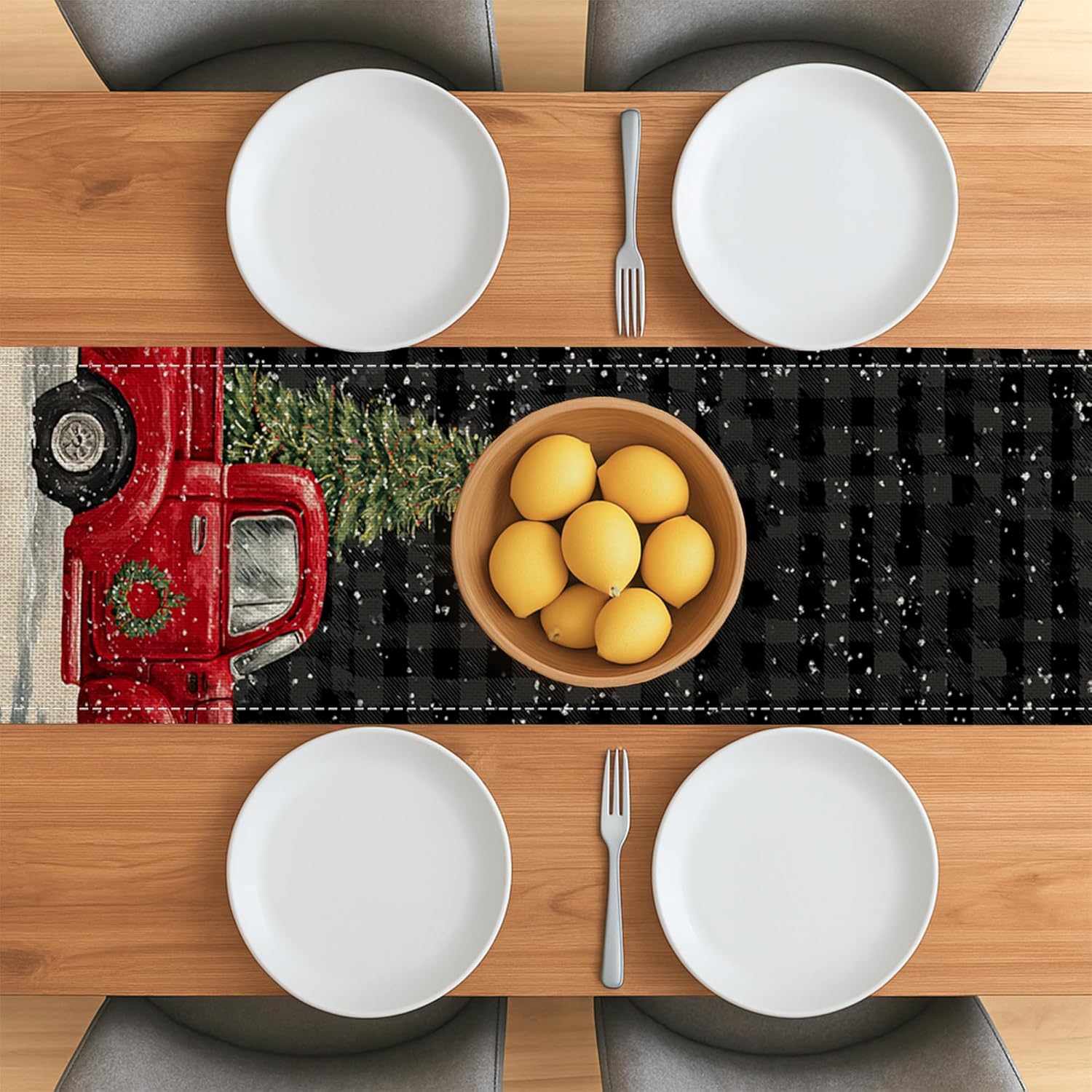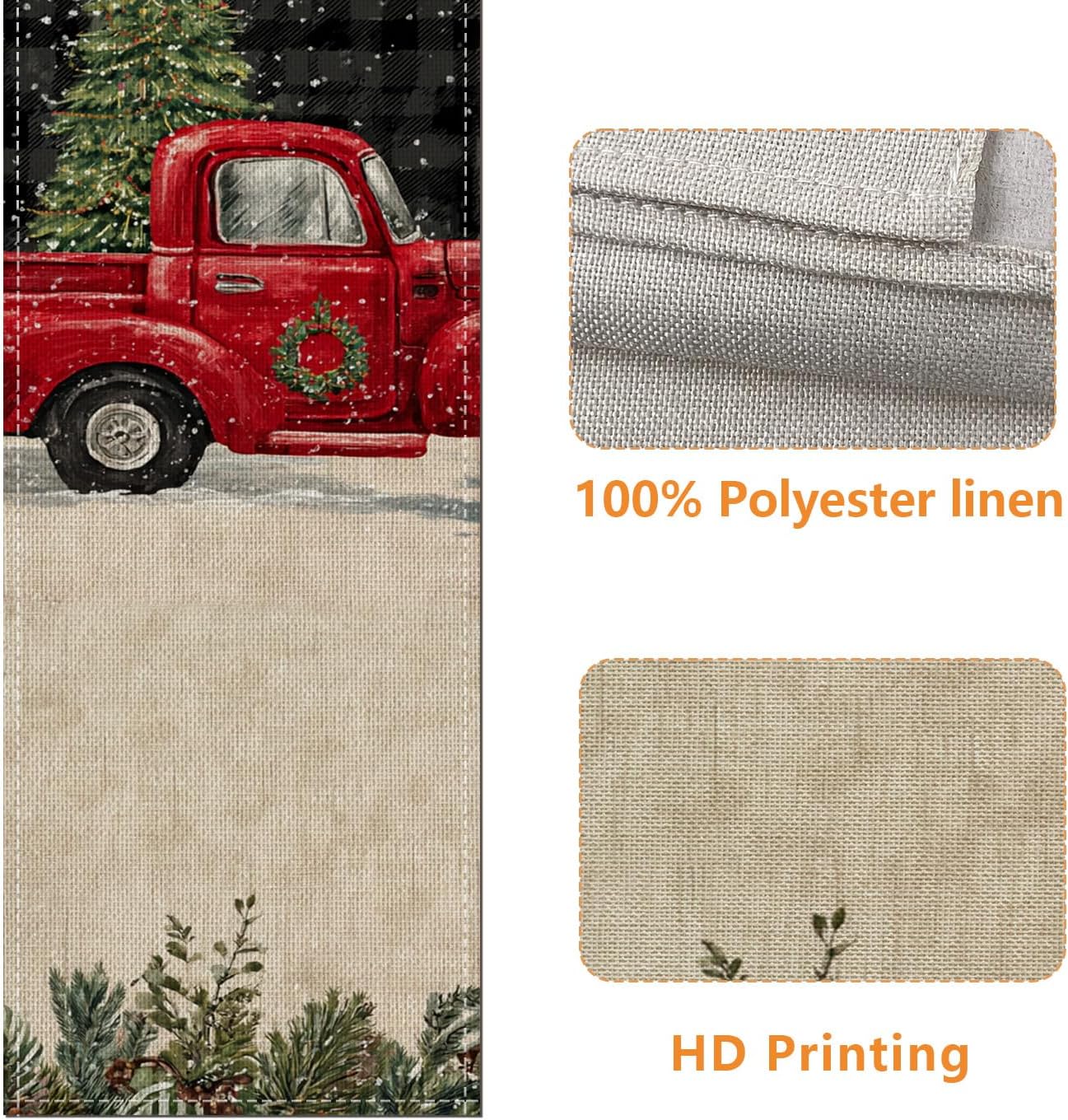 100% poliestere Aspetto lino: realizzato in poliestere con una trama di lino naturale per un aspetto sofisticato Ottimizzato per l'uso familiare: garantisce una presentazione ordinata sulle comuni superfici da pranzo per 4-6 persone Design intelligente e curato: il tessuto lavabile e adatto all'asciugatrice elimina la necessità di una noiosa stiratura Stampa digitale ad alta risoluzione: offre colori vivaci e dettagli nitidi che rimangono nitidi anche dopo numerosi lavaggi Attrattiva visiva: l'opera d'arte distintiva aggiunge personalità e fascino al tuo pasto o festa