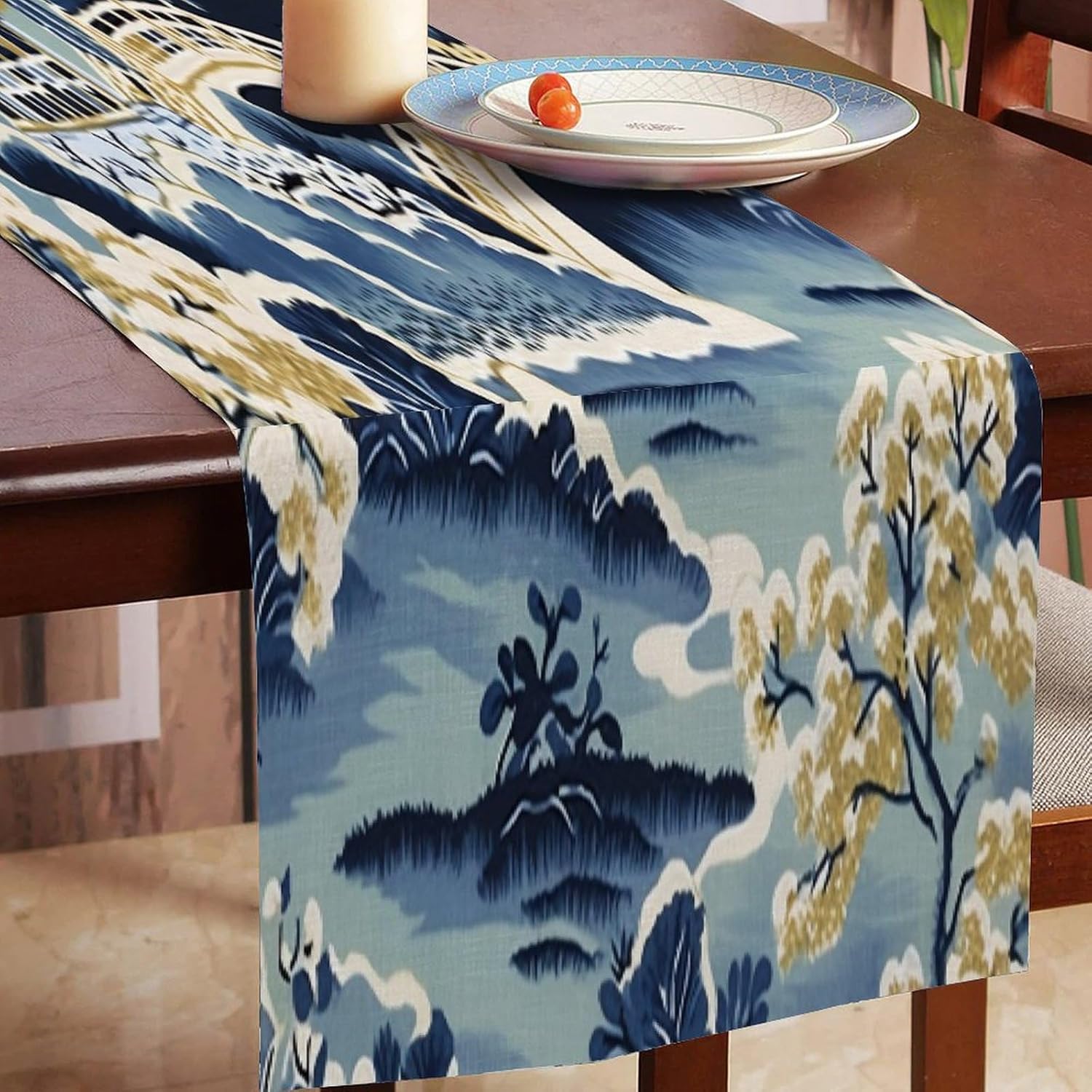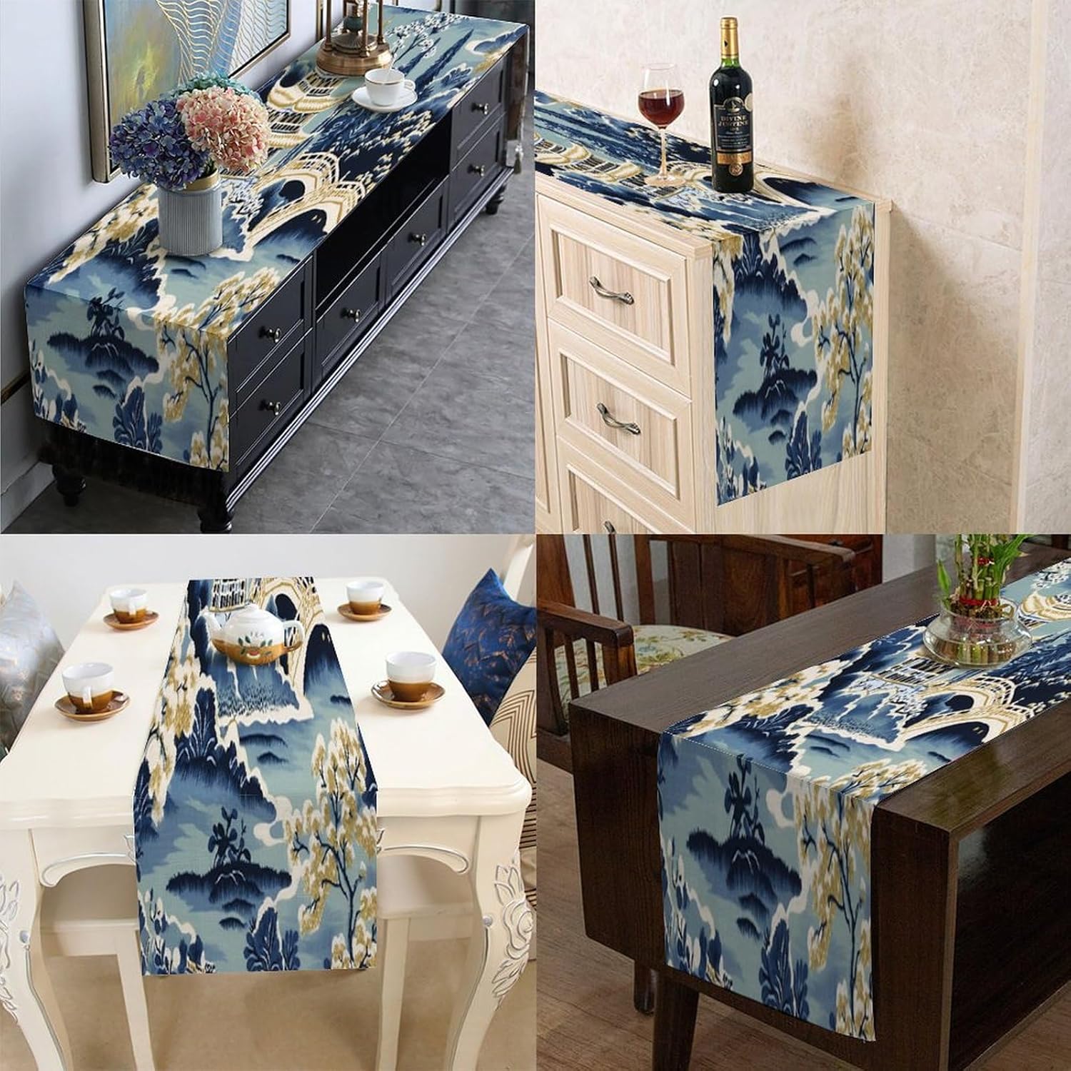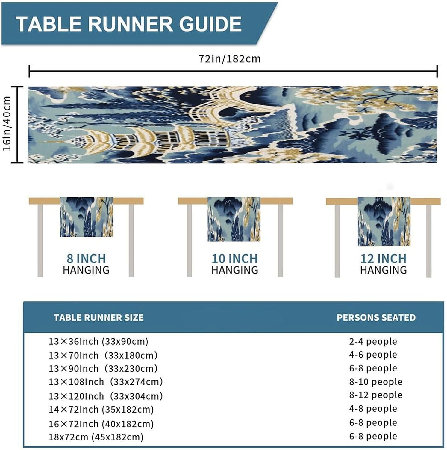 Runner da tavolo asiatico con pagoda cineserie 16 "x 72" Cucina di casa Sala da pranzo Festa Riunione di famiglia Decorazione runner da tavola per feste
