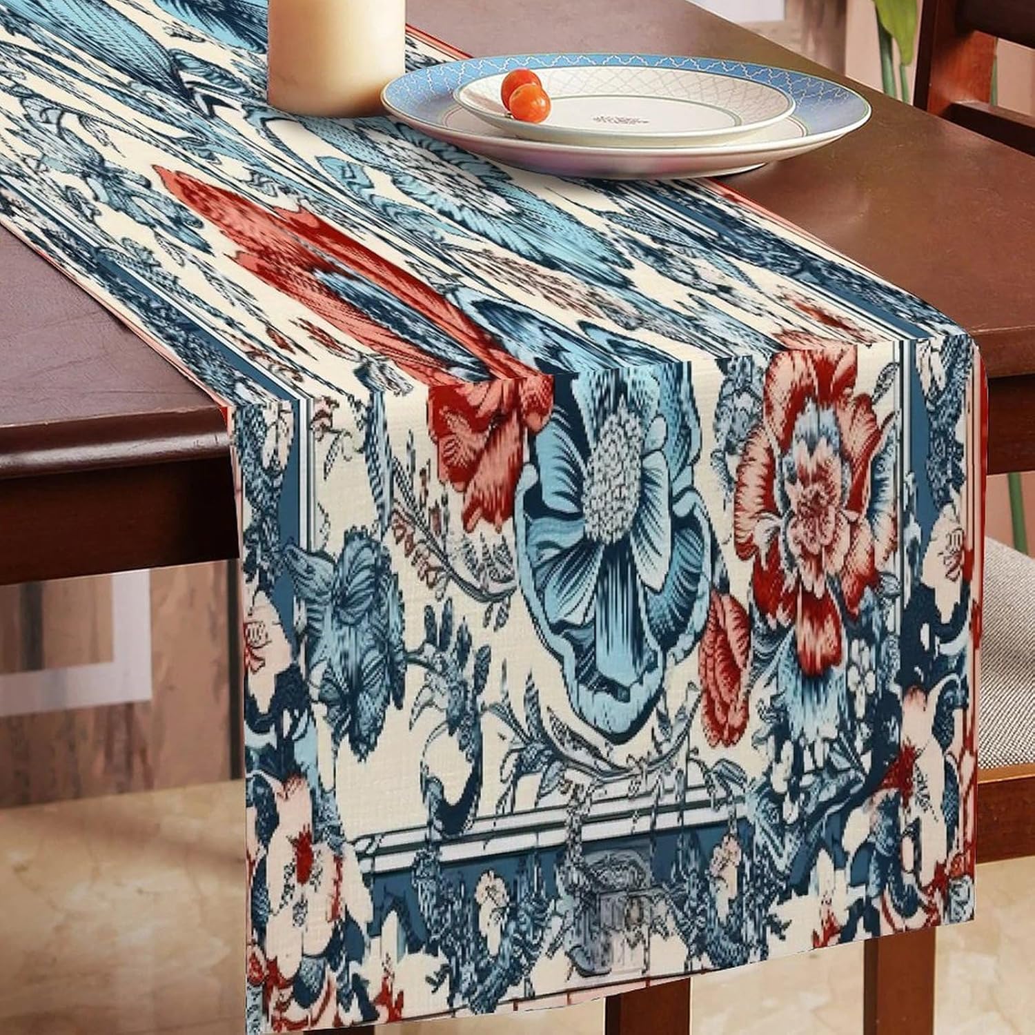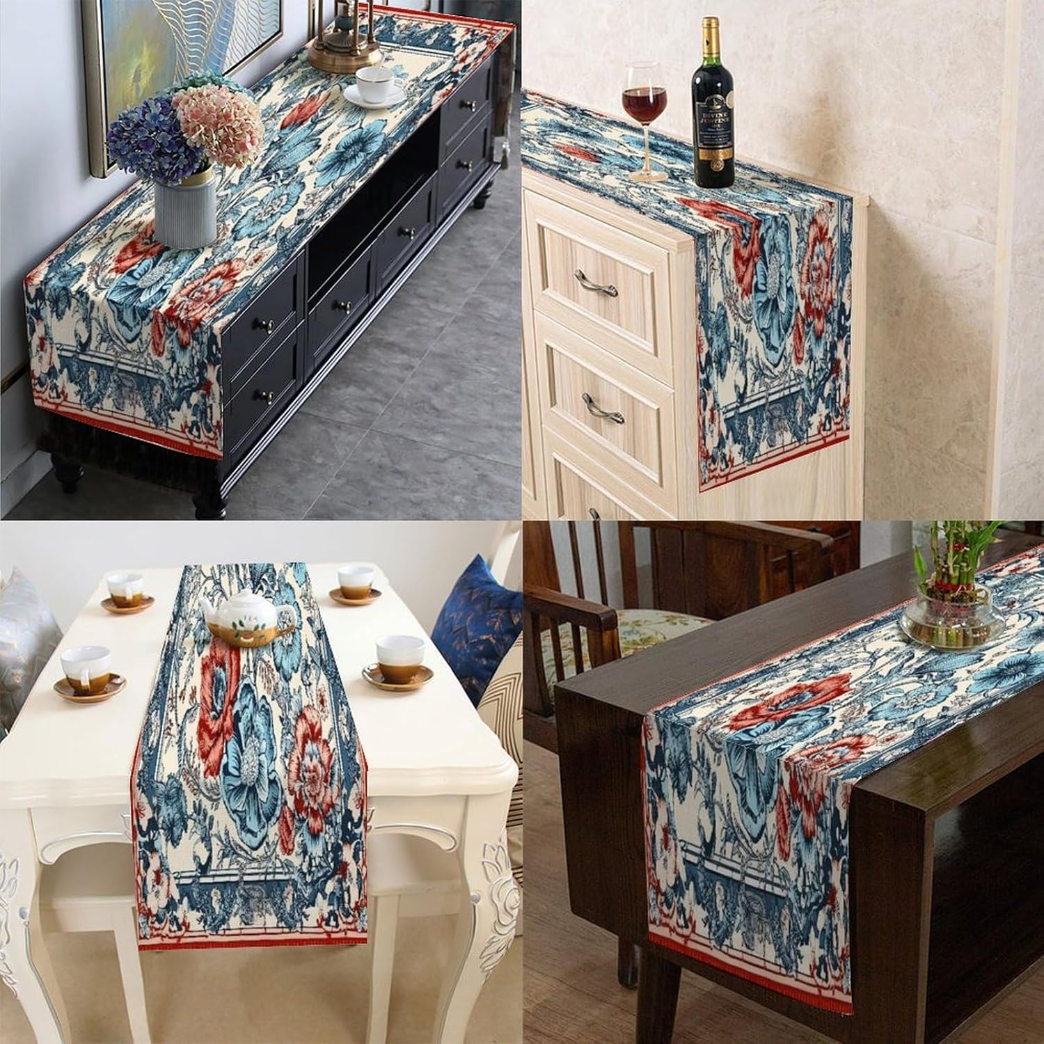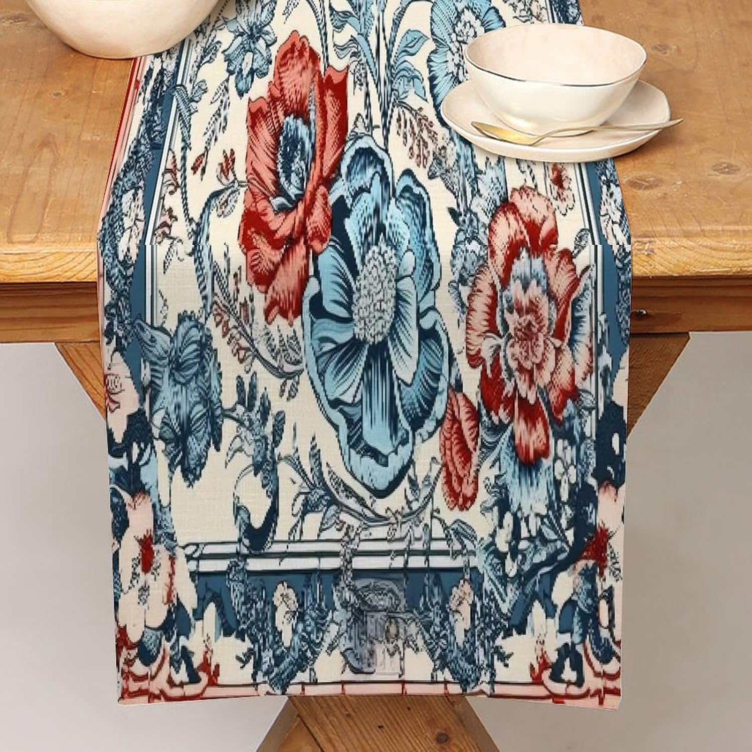 Runner da tavolo cineserie peonia uccello floreale corallo turchese 13x12 pollici tovaglietta decorativa per cucina sala da pranzo feste riunioni di famiglia vacanze runner decorazione