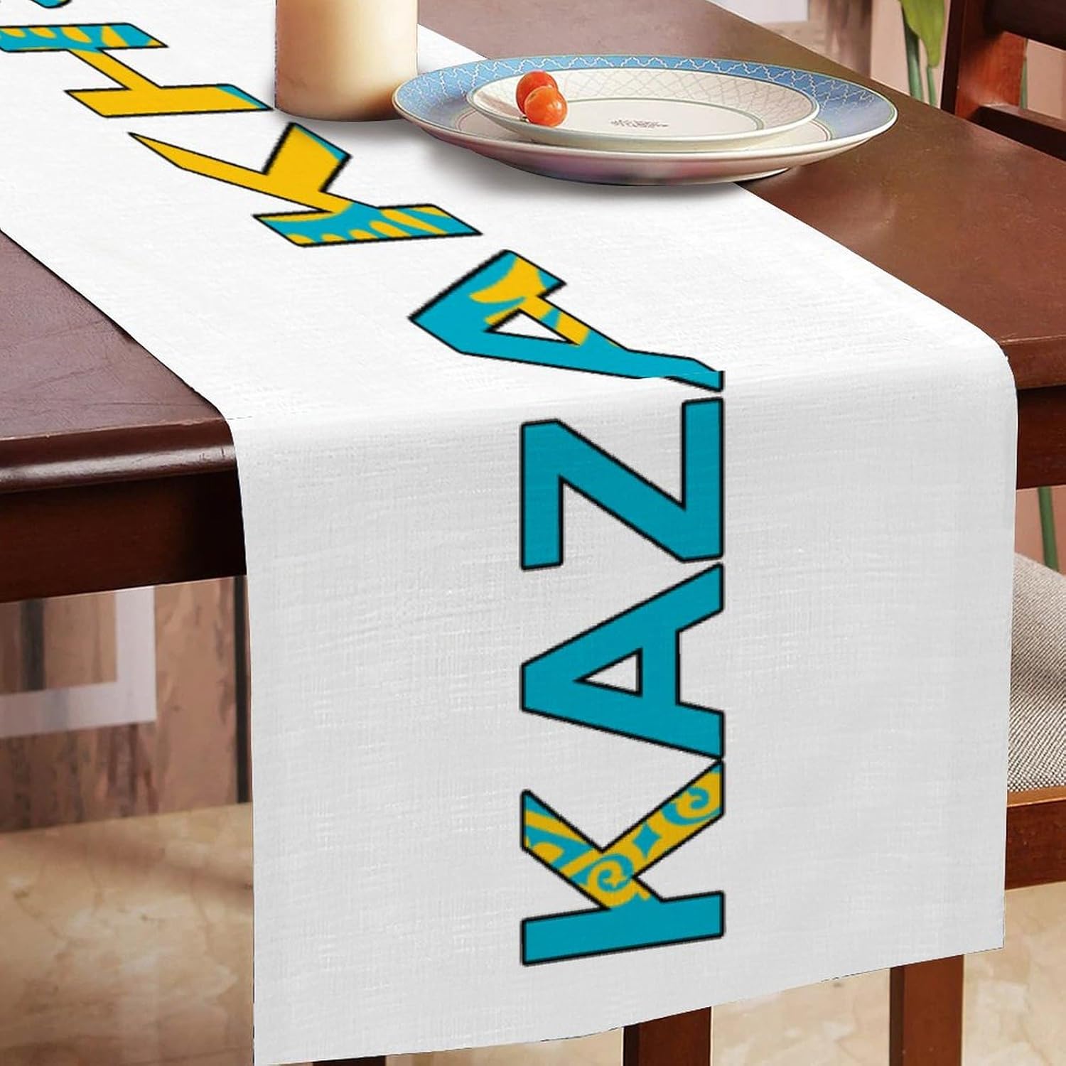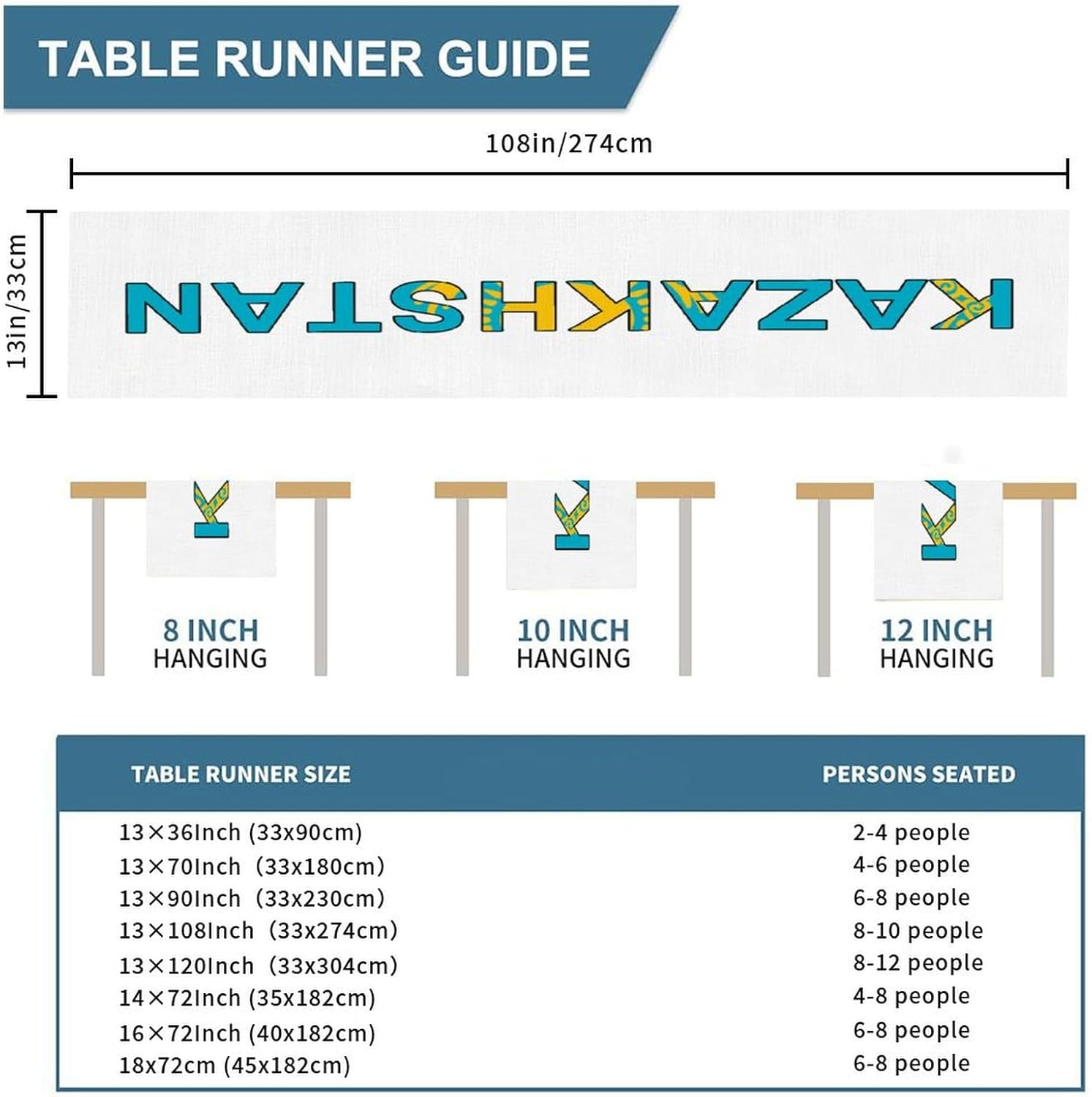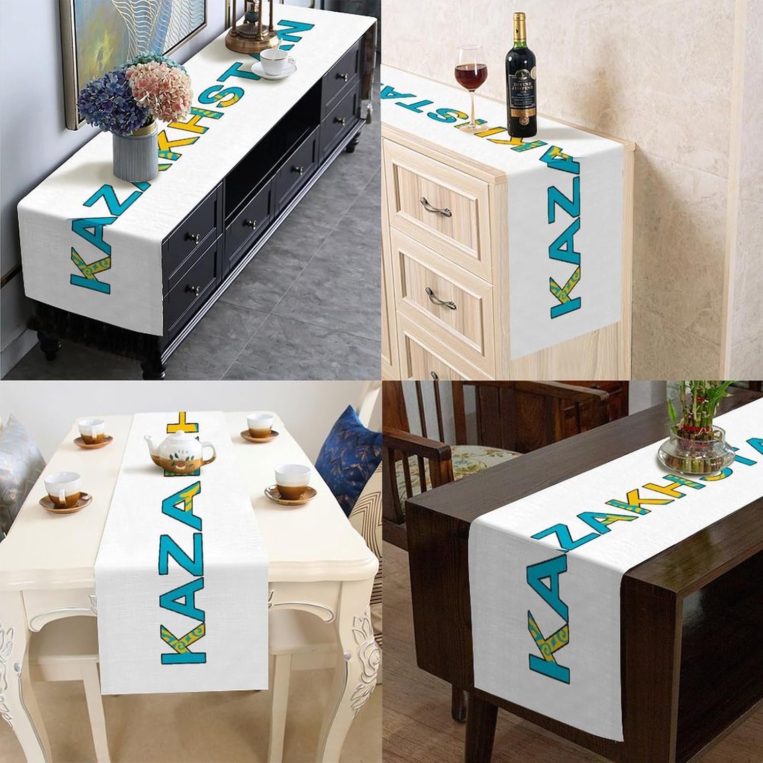Runner da tavolo con bandiera del Kazakistan Decorazione stagionale per tavolo da pranzo da cucina Sala da pranzo per interni ed esterni per feste 13x108 pollici