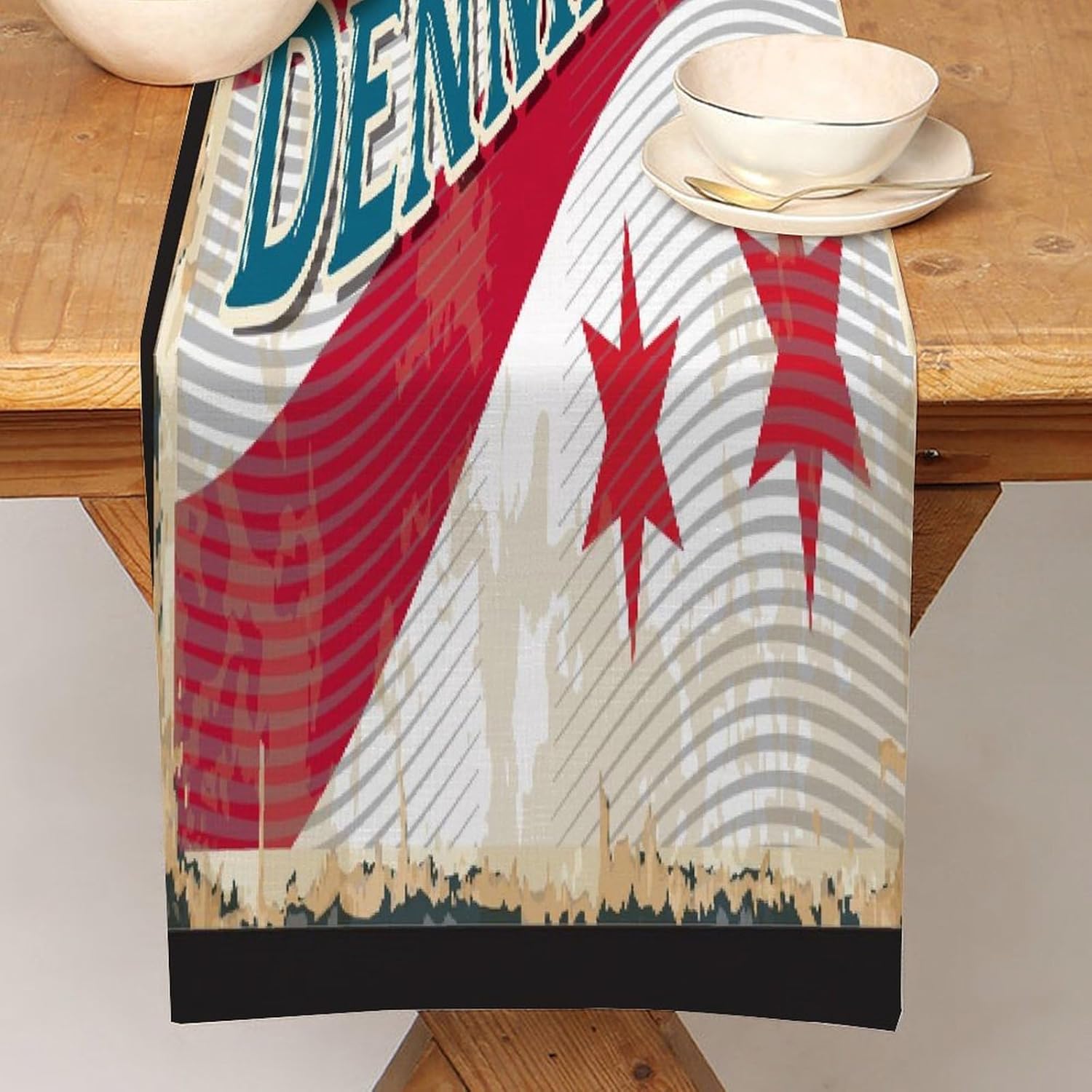 Runner da tavolo con bandiera della Danimarca, 40,6 x 183 cm, in iuta, decorativo, lavabile, per tavolino da caffè, patio, barbecue, tavolo da pranzo, decorazione per la casa