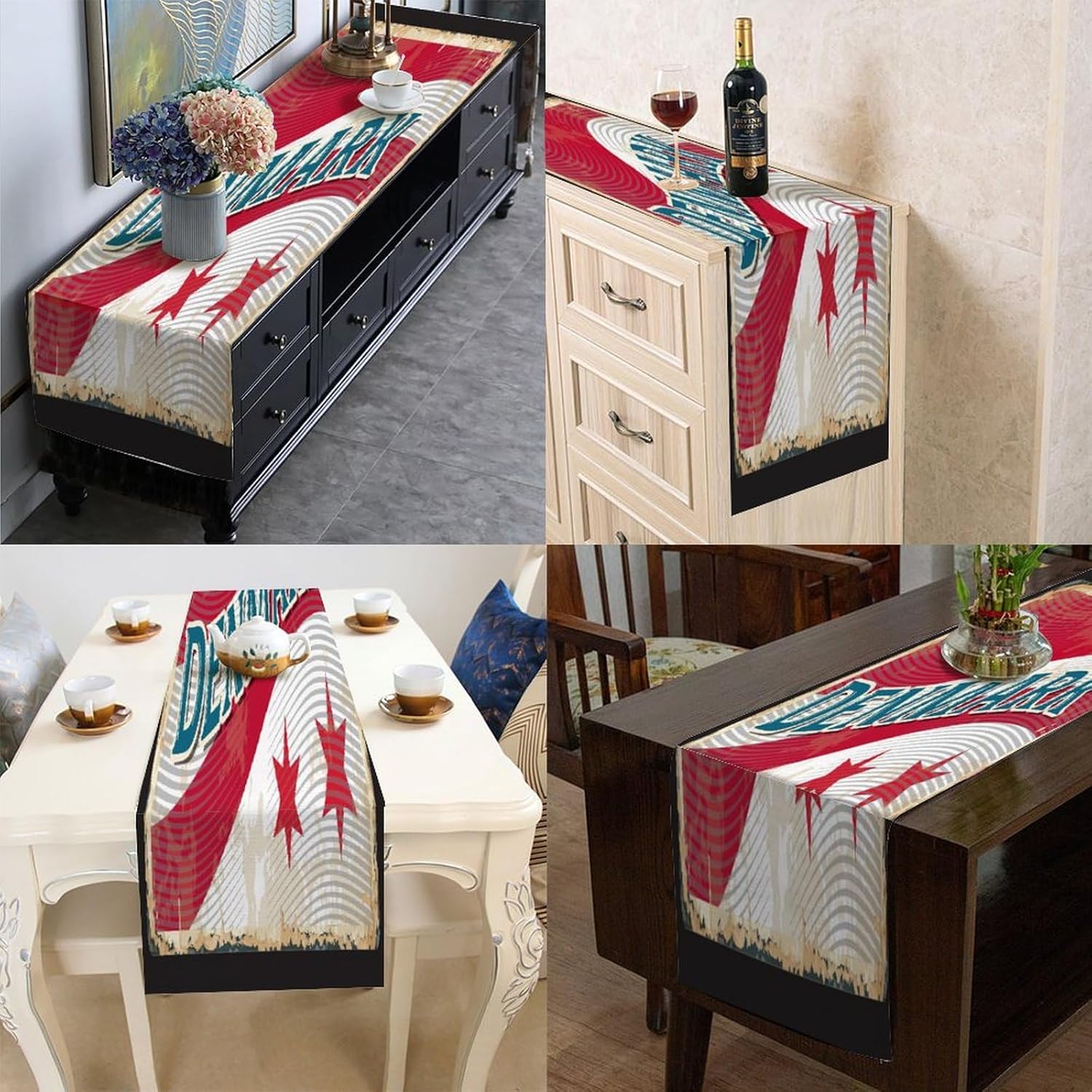 Runner da tavolo con bandiera della Danimarca, runner da tavolo, decorazione per cucina, tavolo da pranzo, decorazione per feste in casa, 33 x 305 cm