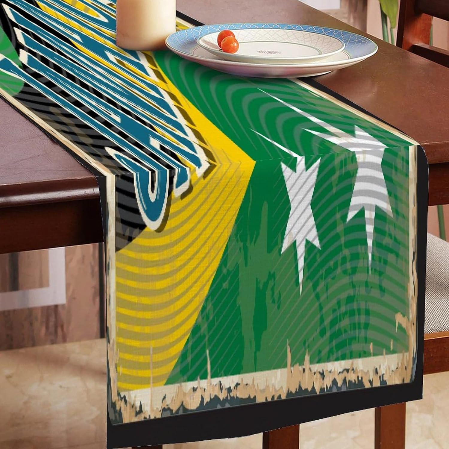 Runner da tavolo con bandiera della Giamaica, runner da tavolo per vacanze, decorazione per cucina, tavolo da pranzo, decorazione per la casa, feste, 45 x 198 cm