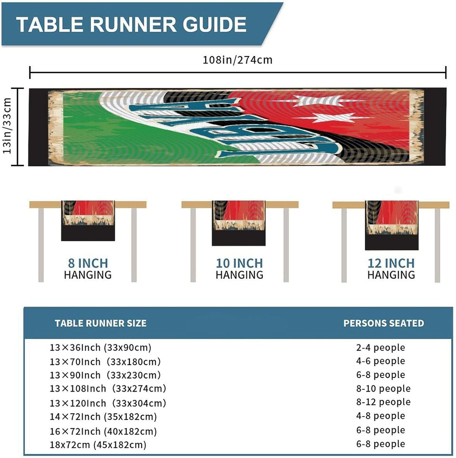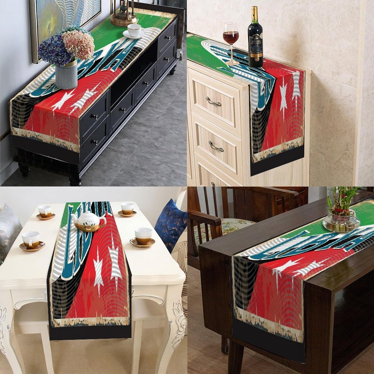Runner da tavolo con bandiera della Libia, decorazione stagionale per cucina e tavolo da pranzo, decorazione per interni ed esterni, decorazione per casa, sala da pranzo e feste, 33 x 274 cm