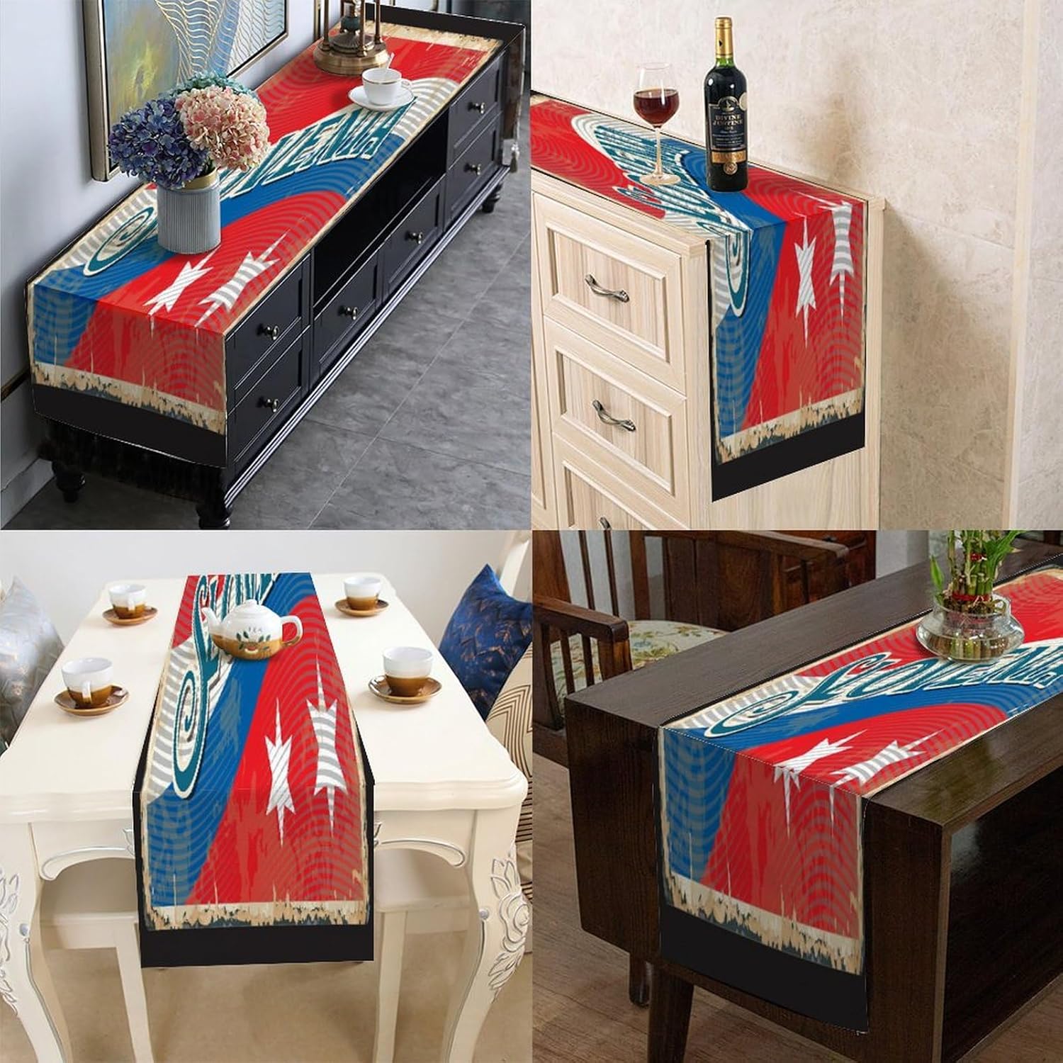 Runner da tavolo con bandiera della Slovenia, decorazione stagionale per cucina, tavolo da pranzo, interni ed esterni, sala da pranzo per feste, 16x72 pollici