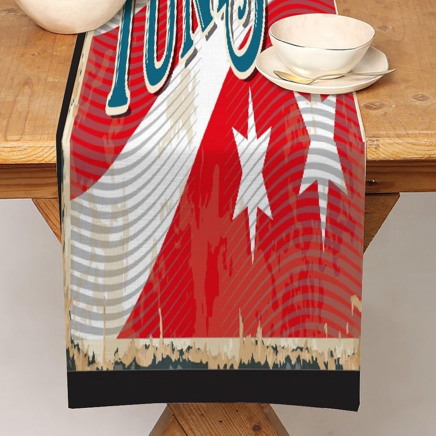 Runner da tavolo con bandiera della Tunisia, runner da tavolo per vacanze, decorazione per la cucina, tavolo da pranzo, decorazione per la casa, feste, 33 x 228 cm