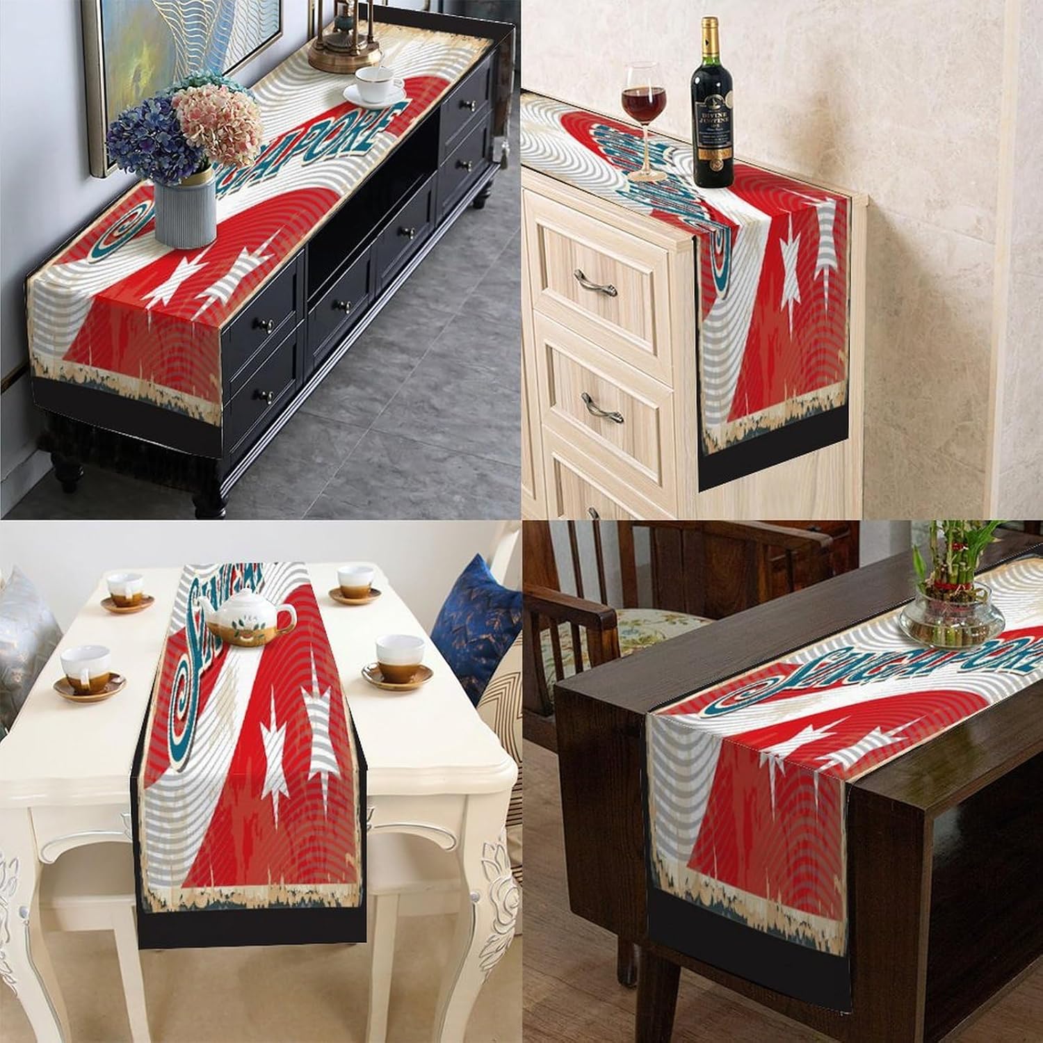 Runner da tavolo con bandiera di Singapore Runner da tavolo Runner da tavola Decorazione da cucina Decorazione da tavolo da pranzo Decorazione per la casa Festa 33x274 cm