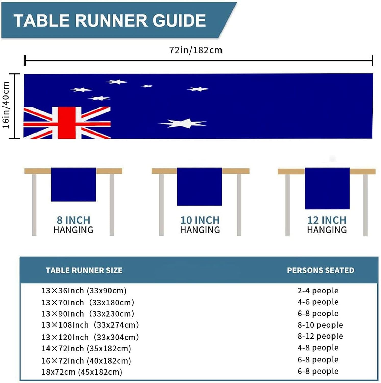 Runner da tavolo con bandiera nazionale australiana, decorazione stagionale per cucina, decorazione del tavolo da pranzo, interni ed esterni, sala da pranzo per feste, 16x72 pollici