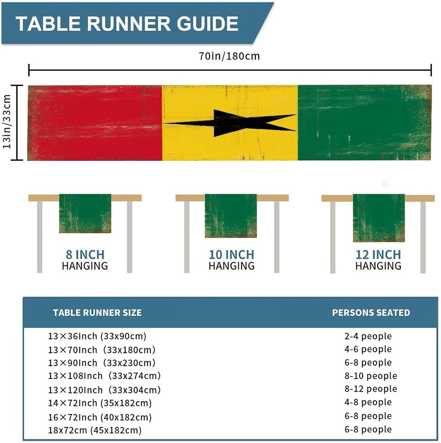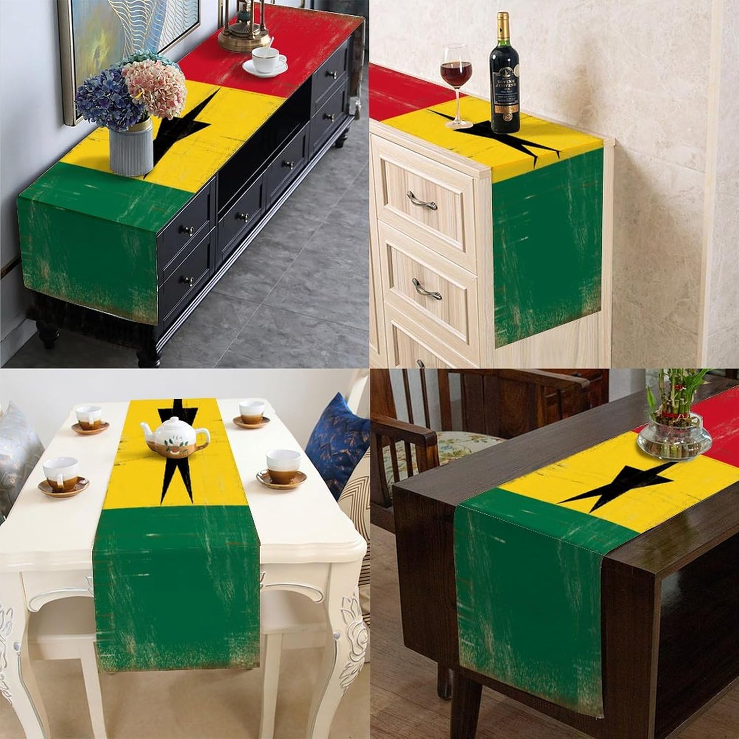 Runner da tavolo con bandiera nazionale del Ghana Runner da tavolo vintage Runner da tavola Decorazione per la cucina Decorazione del tavolo da pranzo per la festa in casa 33x178 cm