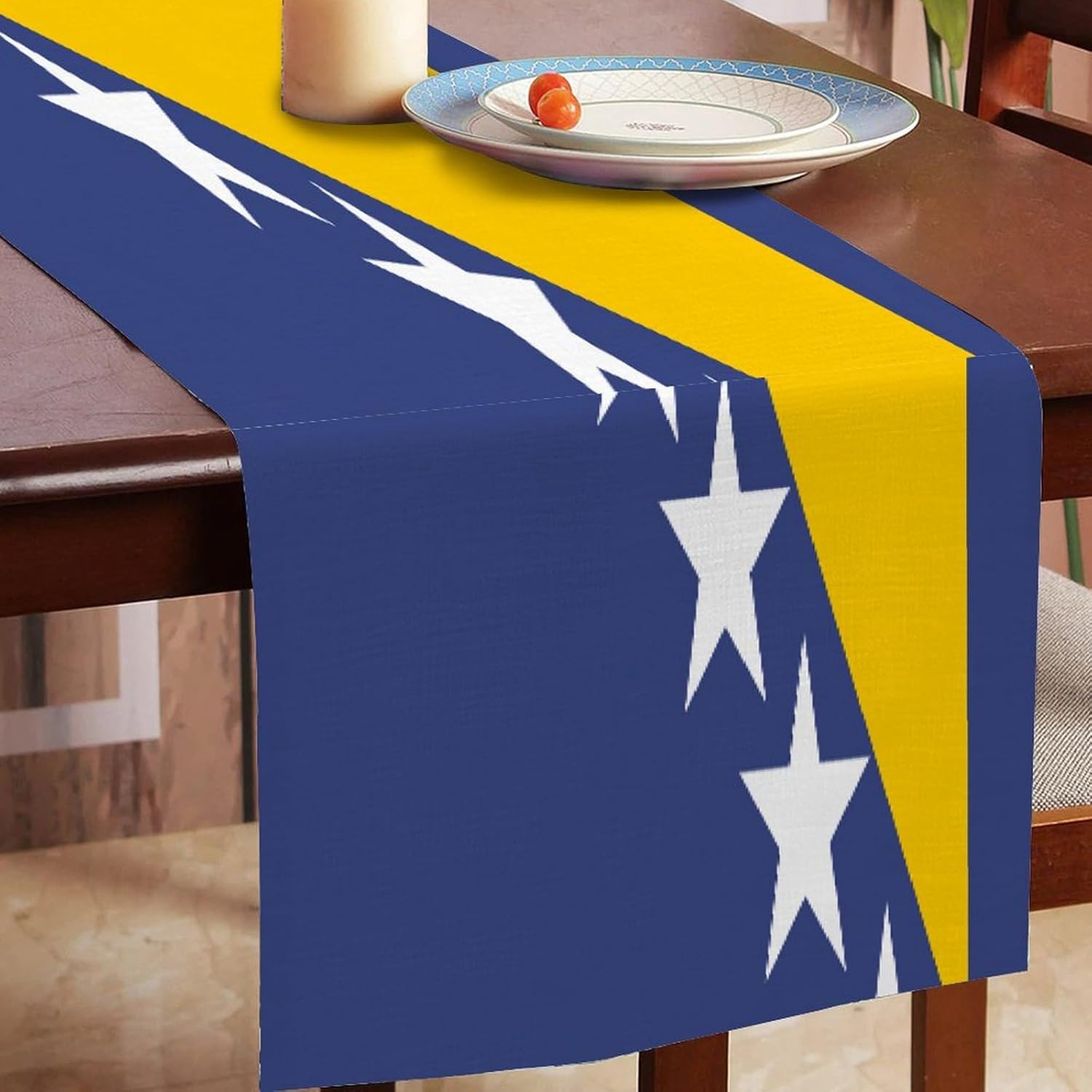 Runner da tavolo con bandiera nazionale della Bosnia ed Erzegovina, decorazione stagionale per cucina e tavolo da pranzo, decorazione per interni ed esterni, decorazione per casa, sala da pranzo