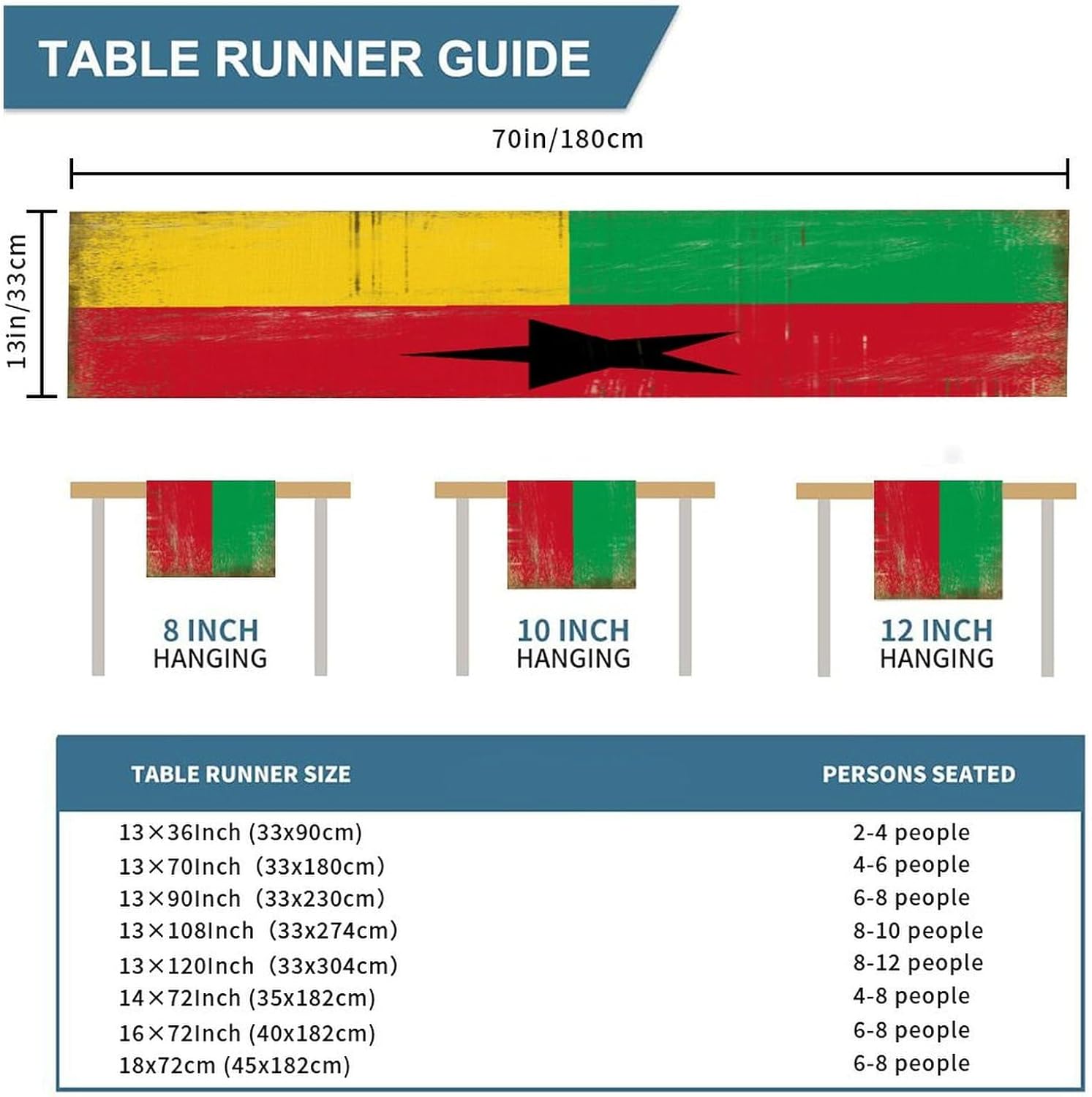 Runner da tavolo con bandiera nazionale della Guinea Bissau Runner da tavolo vintage Runner da tavolo Runner da tavola Decorazione per cucina Decorazione tavolo da pranzo per feste in casa 33x178 cm