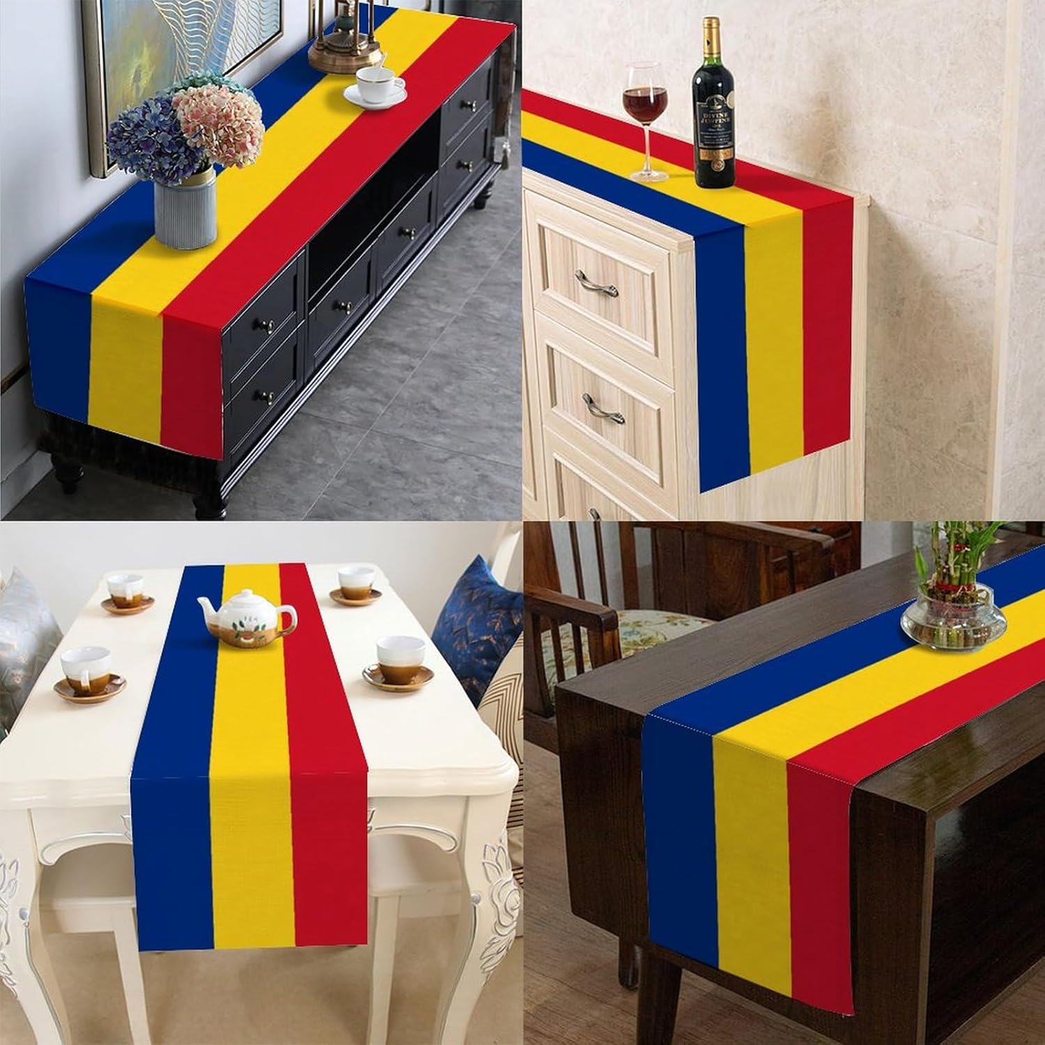 Runner da tavolo con bandiera nazionale della Romania, decorazione stagionale per cucina e tavolo da pranzo, decorazione per interni ed esterni, decorazione per casa, sala da pranzo, feste, 40 x 183